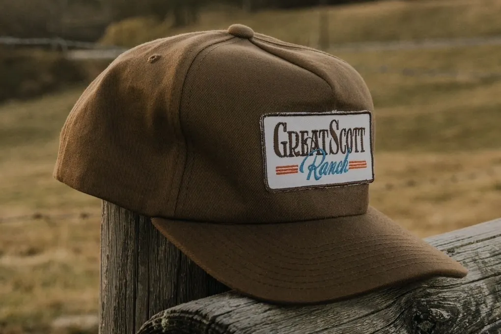 Great Scott Ranchのロゴワッペンキャップ。スナップバックでサイズ調整可能。100%コットンなのでガシガシ被れます。