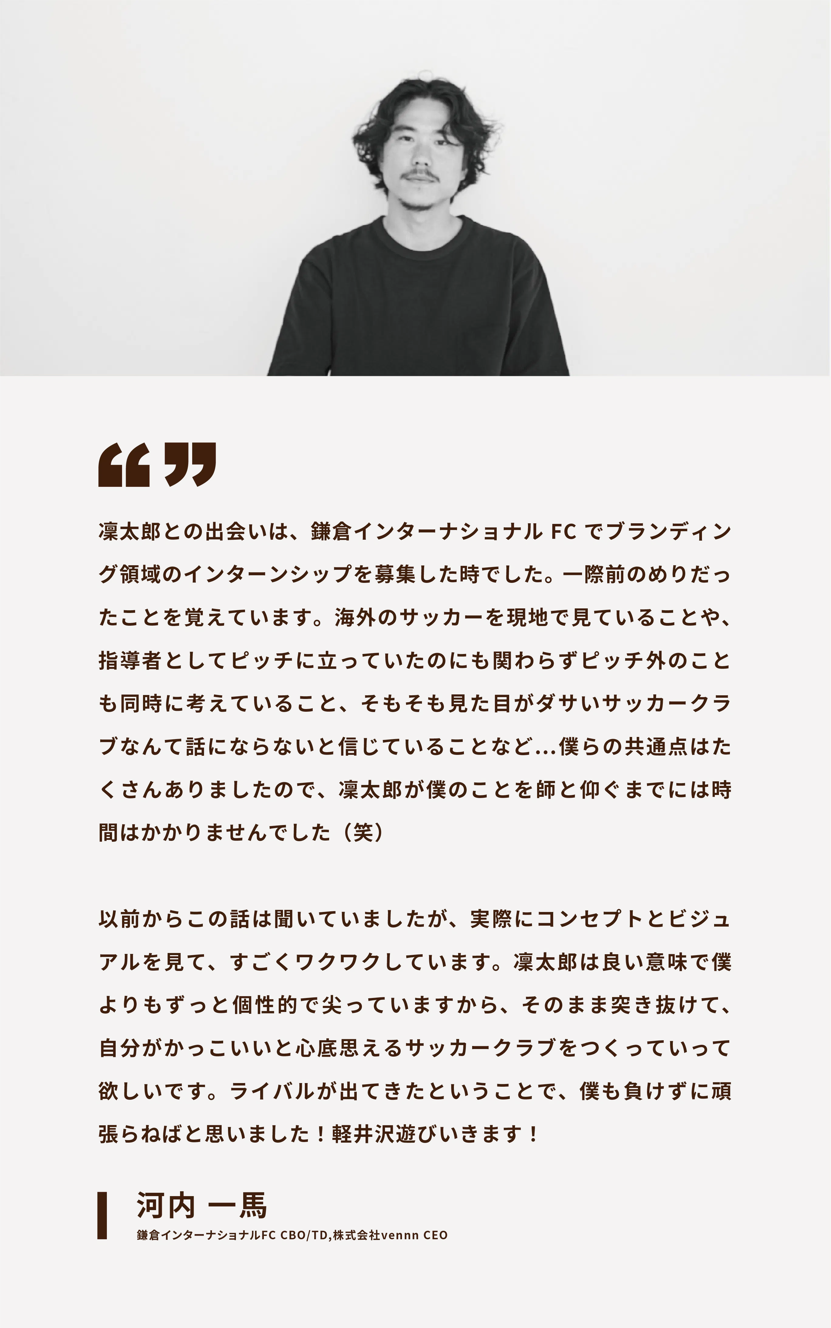 「河内一馬」さん(以下一馬さん)という方で、現在は鎌倉インターナショナルFCにてテクニカル・ディレクターを務めています。