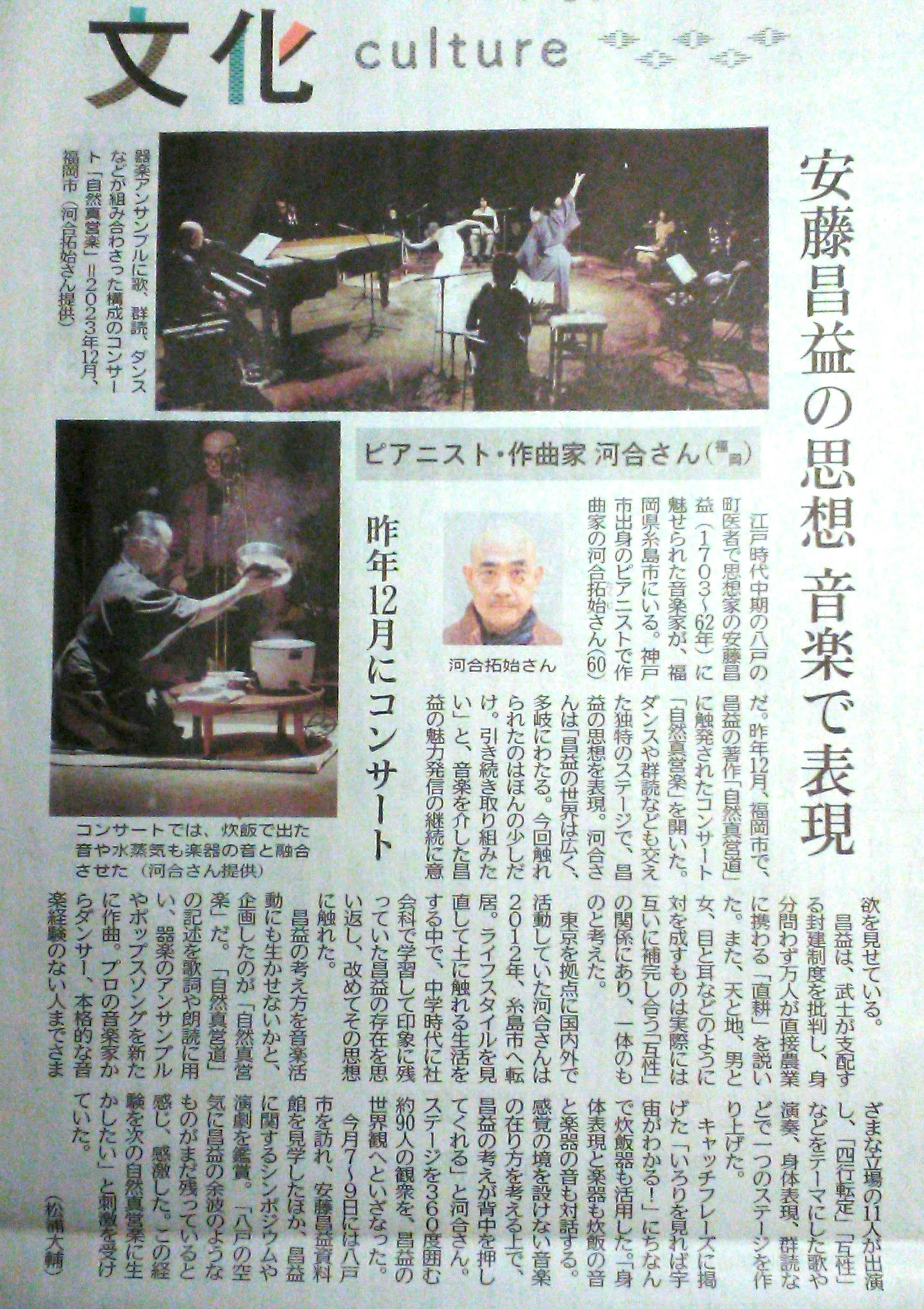 昨年のコンサート「自然真営楽」には大きな反響がありました。たとえば下記の新聞記事をご覧ください。