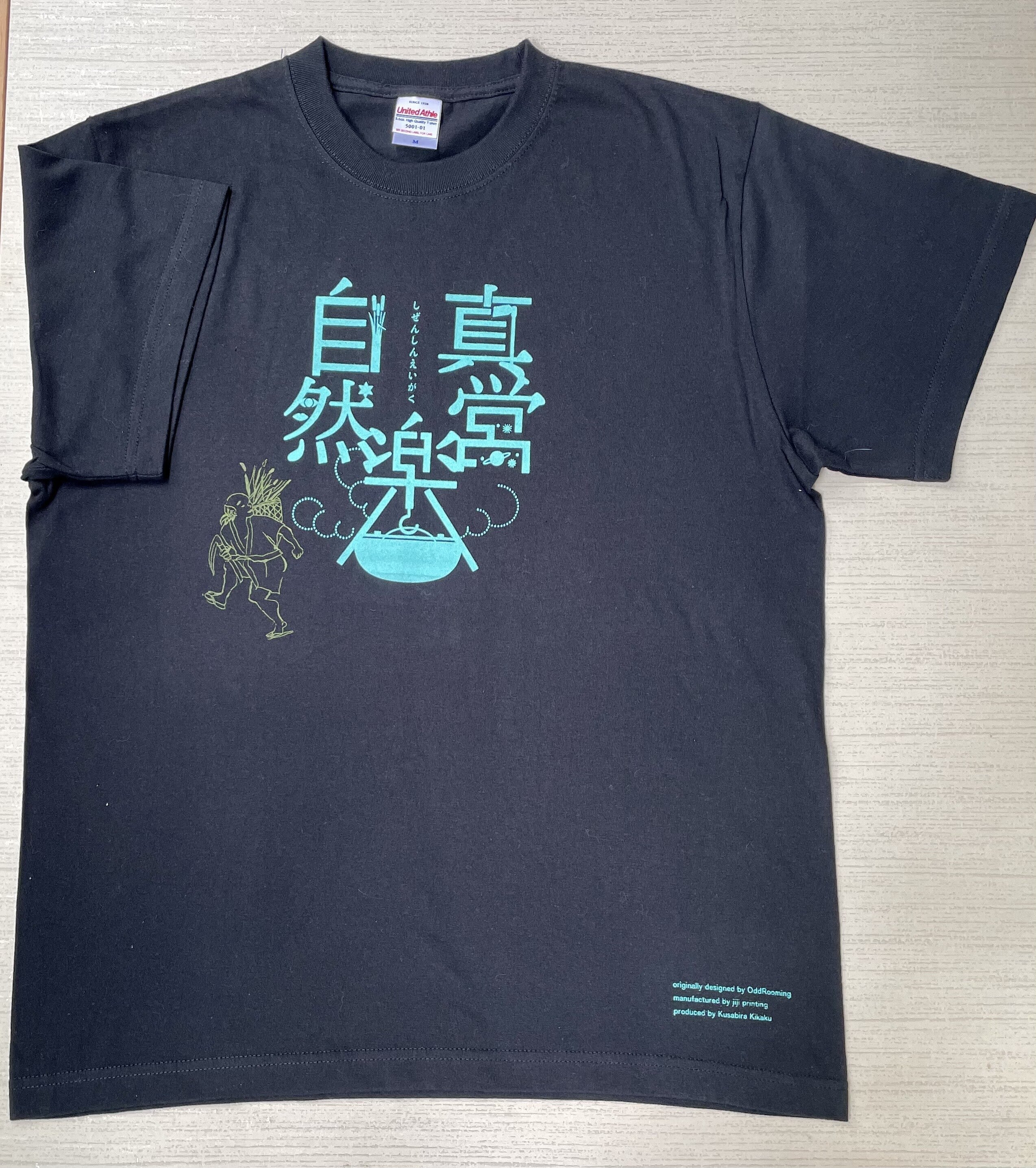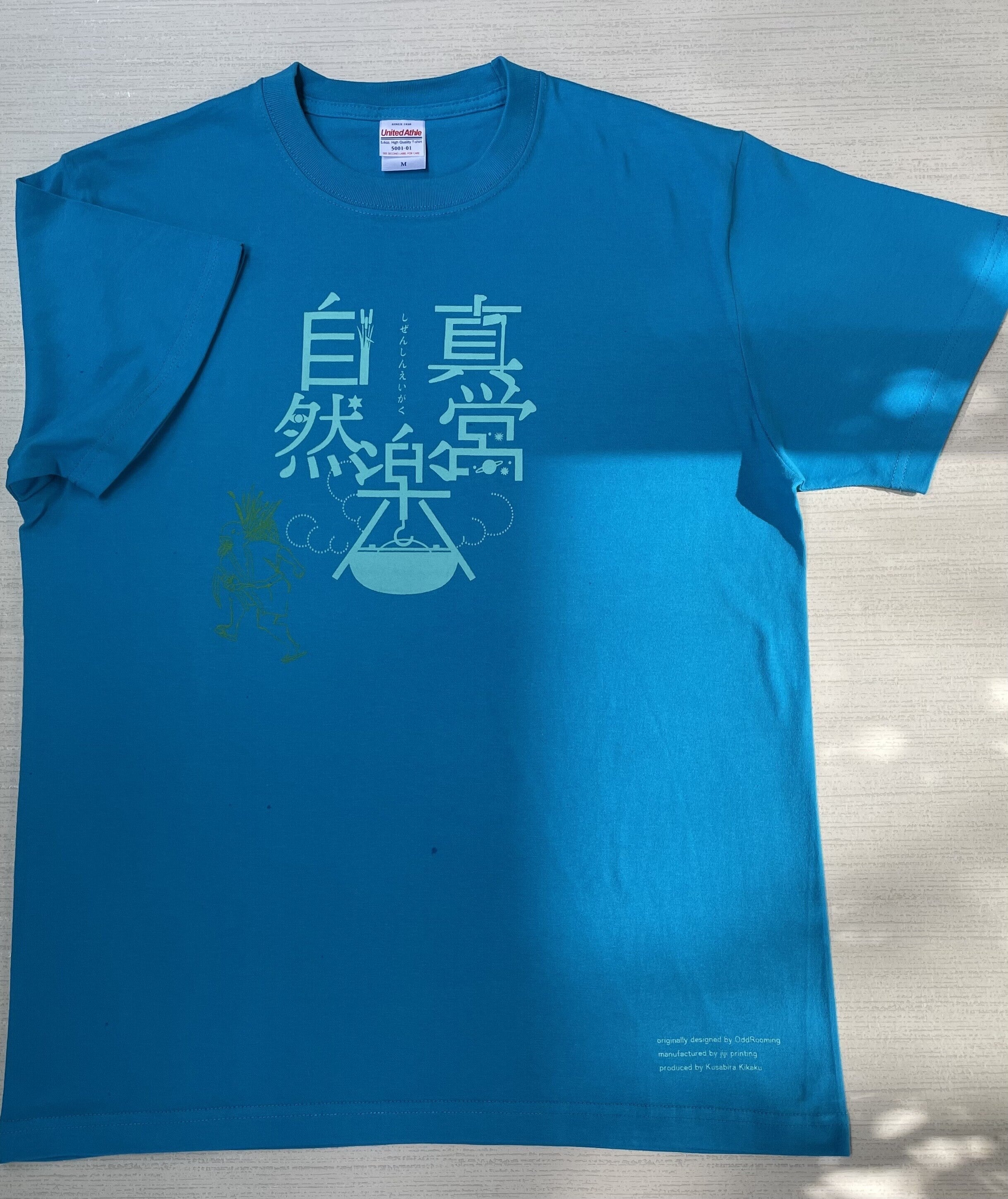 リターン3の【自然真営楽Tシャツ】の新写真です!白、黒、青(ターコイズブルー)の三色があります。サイズも、S,M,Lの3サイズからお選びいただけます。図柄は、昨年の「自然真営楽」コンサートのフライヤーデザインから。今回の「四行妙道の楽・一具」も、昨年からの「自然真営楽」プロジェクトのひとつでもあるのです。