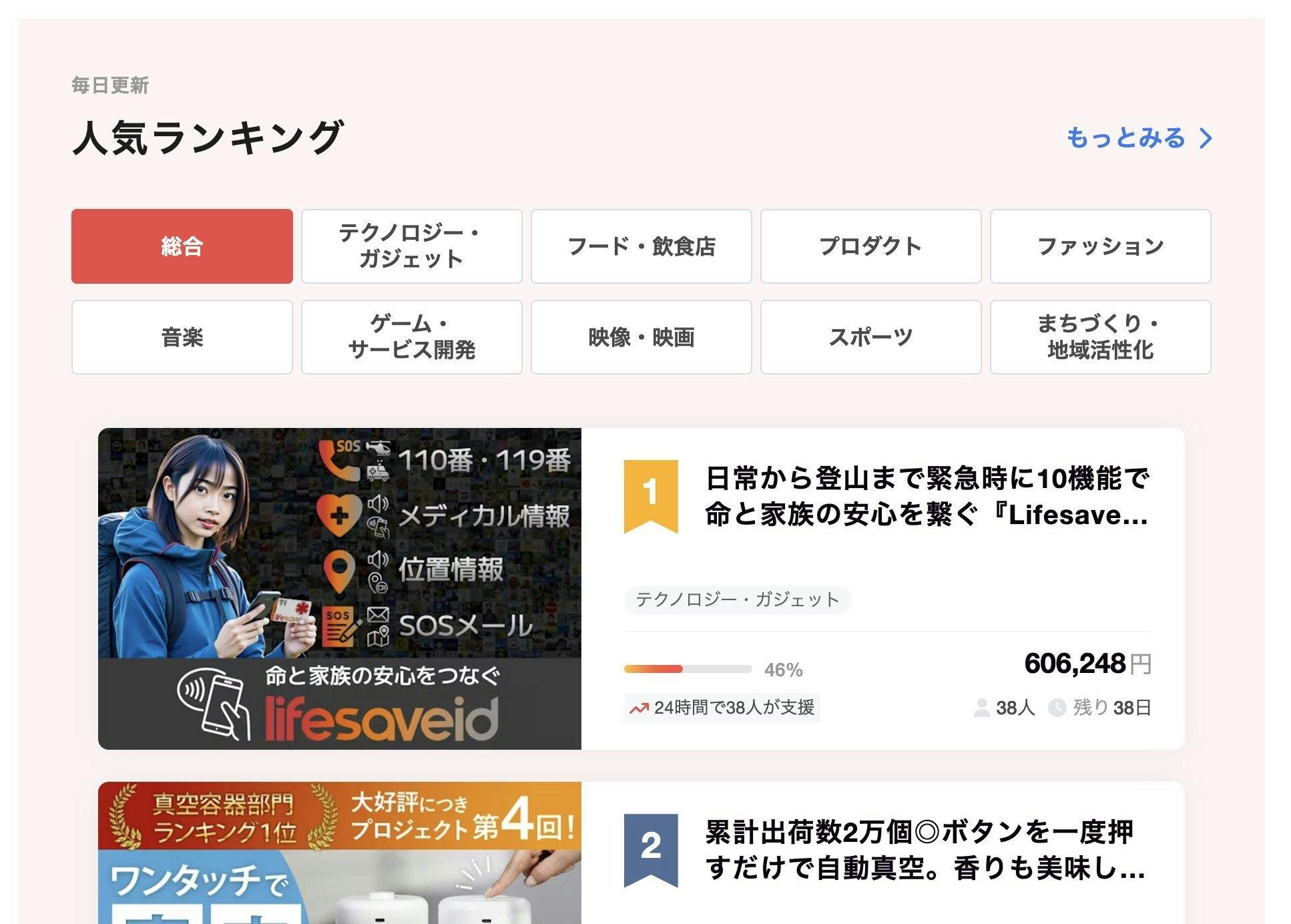 ・CAMPFIREでの人気ランキングでなんと総合1位を獲得!