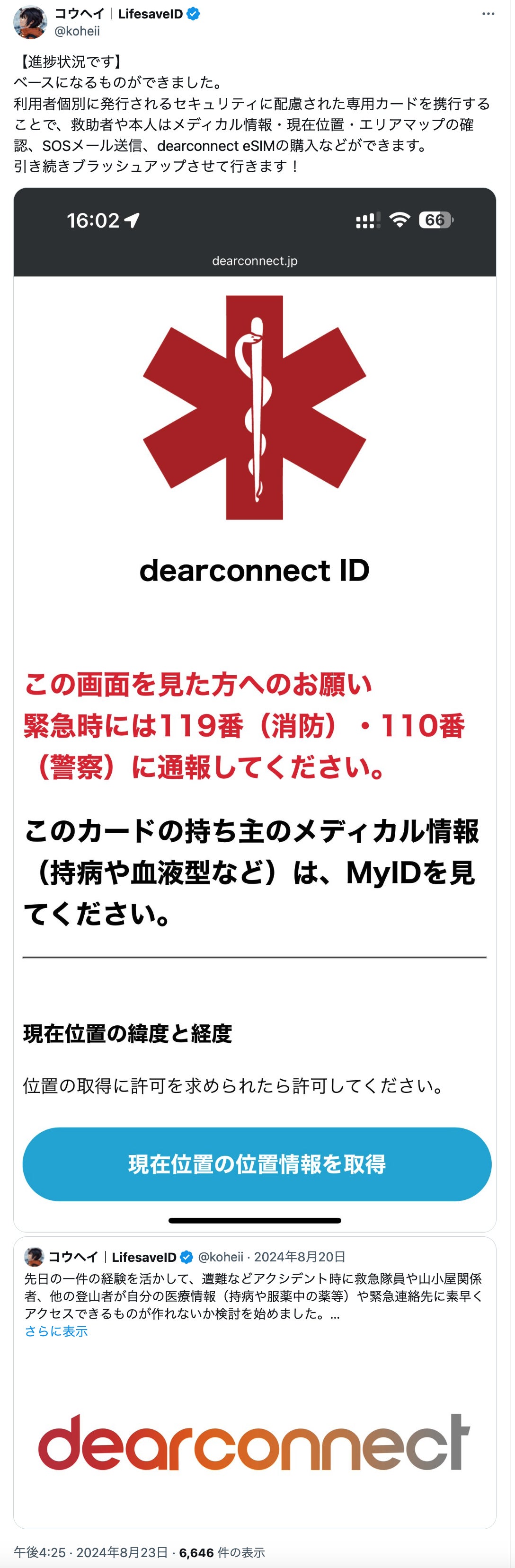 息苦しくて声を出すのがやっとという状態の中、緯度経度はスマホのどのアプリに表示されているのか一瞬頭が真っ白になったことを覚えています。何とか調べて伝える訳ですがその作業を4回以上行うのにとても難儀しました。持病を伝えることも同様、いやそれ以上に大変でした。