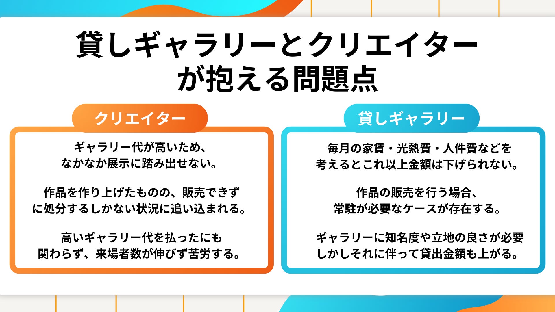 また、貸しギャラリーの利益構造にも課題があります。