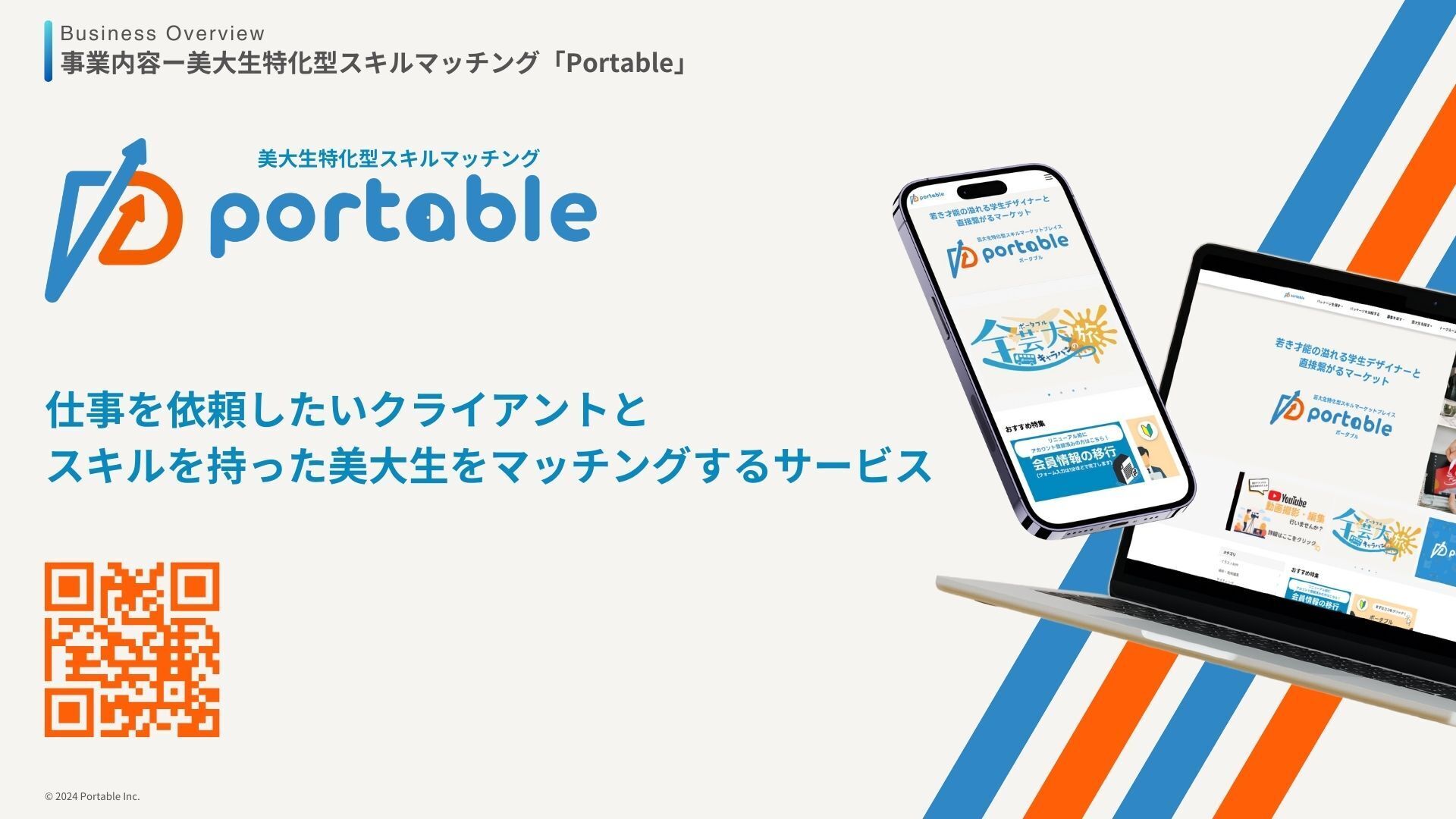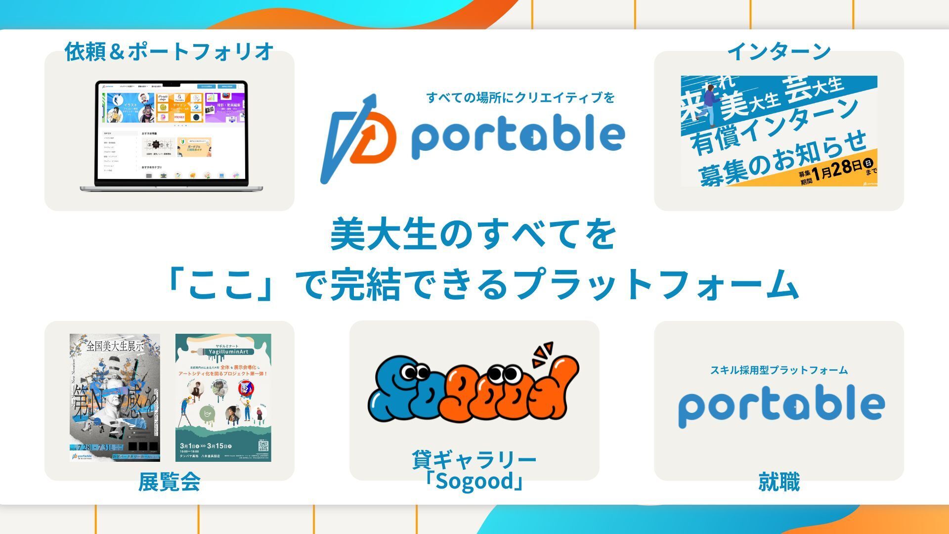 メインの事業としては、美大生特化型スキルマッチングサービス「Portable」を提供しております。