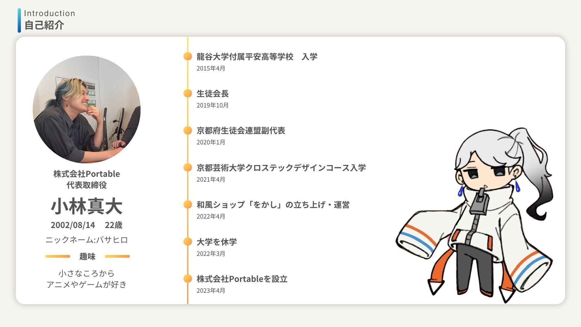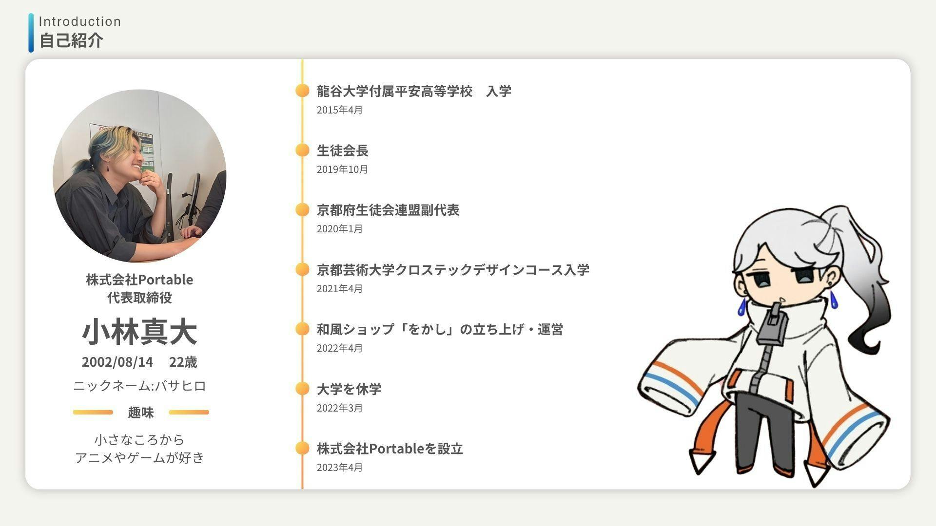 Portableは、京都芸術大学在学中の学生である小林真大が2023年4月12日に立ち上げた会社になります。