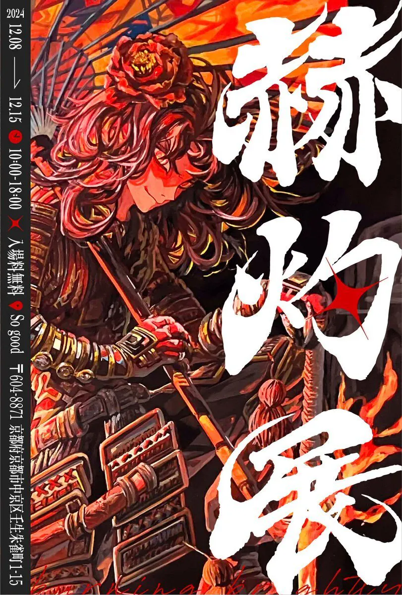 2024/12/04 09:50はじめまして、portableです!この度、初となるクラウドファンディングを公開しました。不安な中でしたが、なんと開始数日で20%を達成することができました。ご支援してくださった皆様、本当にありがとうございます!活動報告第1弾としまして、12月8日より始まるオープニングイベントの詳細を公開させていただきます!ギャラリー「Sogood」の記念すべき第一回目の展示として、天晴(@Tensei_kkk)さんの初の個展となる『赫灼展』の開催が決定いたしました!!!【過去作品】また特別企画といたしまして、展示期間中、天晴さんによるライブペイントも行われます。初個展にむけて天晴さんよりコメントをいただきました。『ありがたいことにギャラリー「Sogood」様の記念すべき初展示を担当、そして初個展をさせていただくことになって、今はとにかく「自分にできることは精一杯やる!」という気持ちで展示に臨みたいと考えております。 また、今回の展示がきっかけで、少しでも多くの学生さんや作家様にこういったギャラリーがあると認知していただけたら何よりでございます。』ギャラリー「Sogood」の初展示、そして天晴さんの初個展となる『赫灼展』、ぜひお越しください!!お楽しみに!〈展示情報〉『赫灼展』ー天晴(@Tensei_kkk)2024年12月8日(日)‐12月15日(日) 10:00‐18:00ギャラリー「Sogood」(京都府京都市中京区壬生朱雀町1‐15)入場料無料引き続き、クラウドファンディングも進行中です!ご支援のほどよろしくお願いいたします! もっと見る