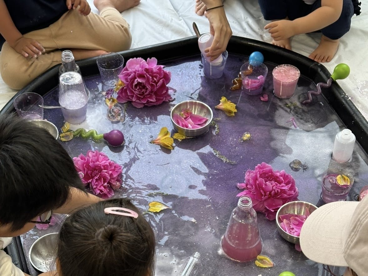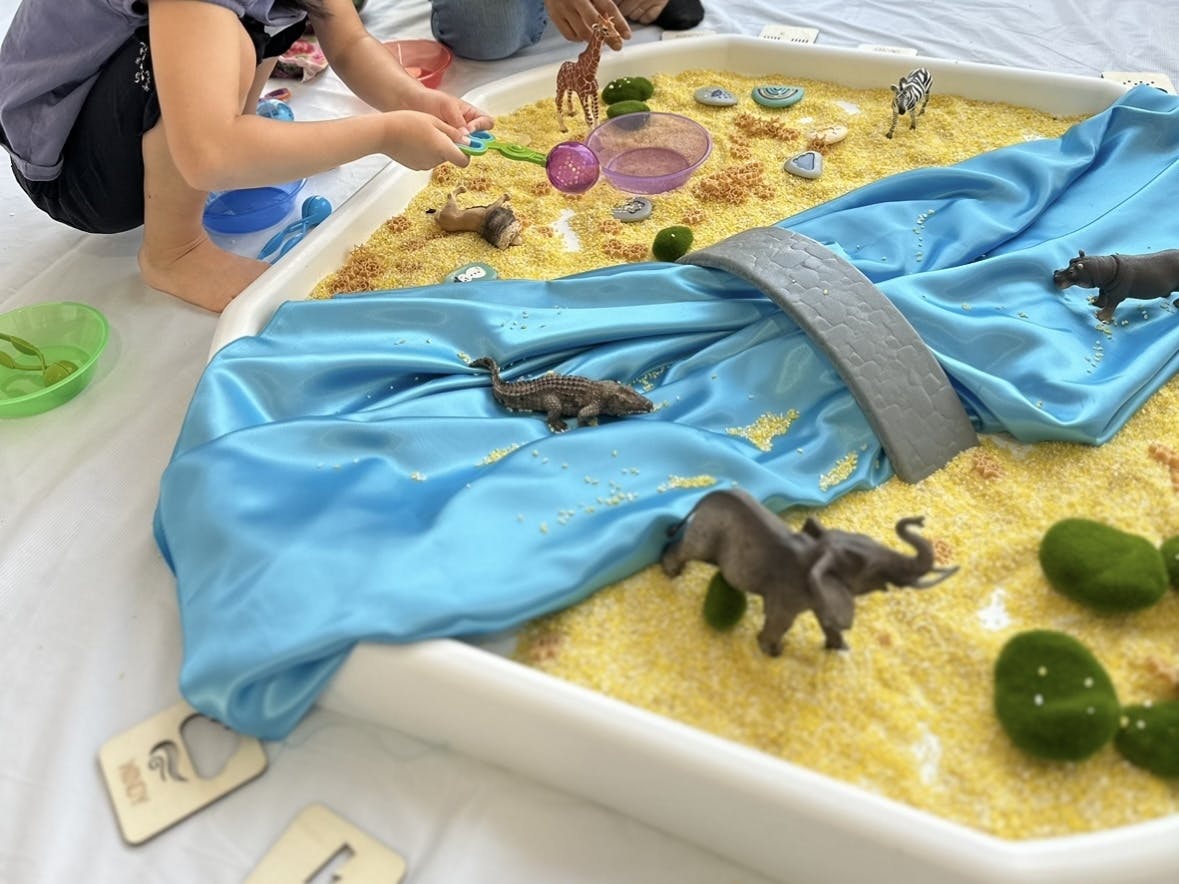 触覚や味覚、嗅覚、聴覚、視覚といった五感を刺激する感覚遊びのことです。 掴む・混ぜる・握る・移す・分けるなどの指先を使う動作を通して、遊びながら子どもの成長を促します。