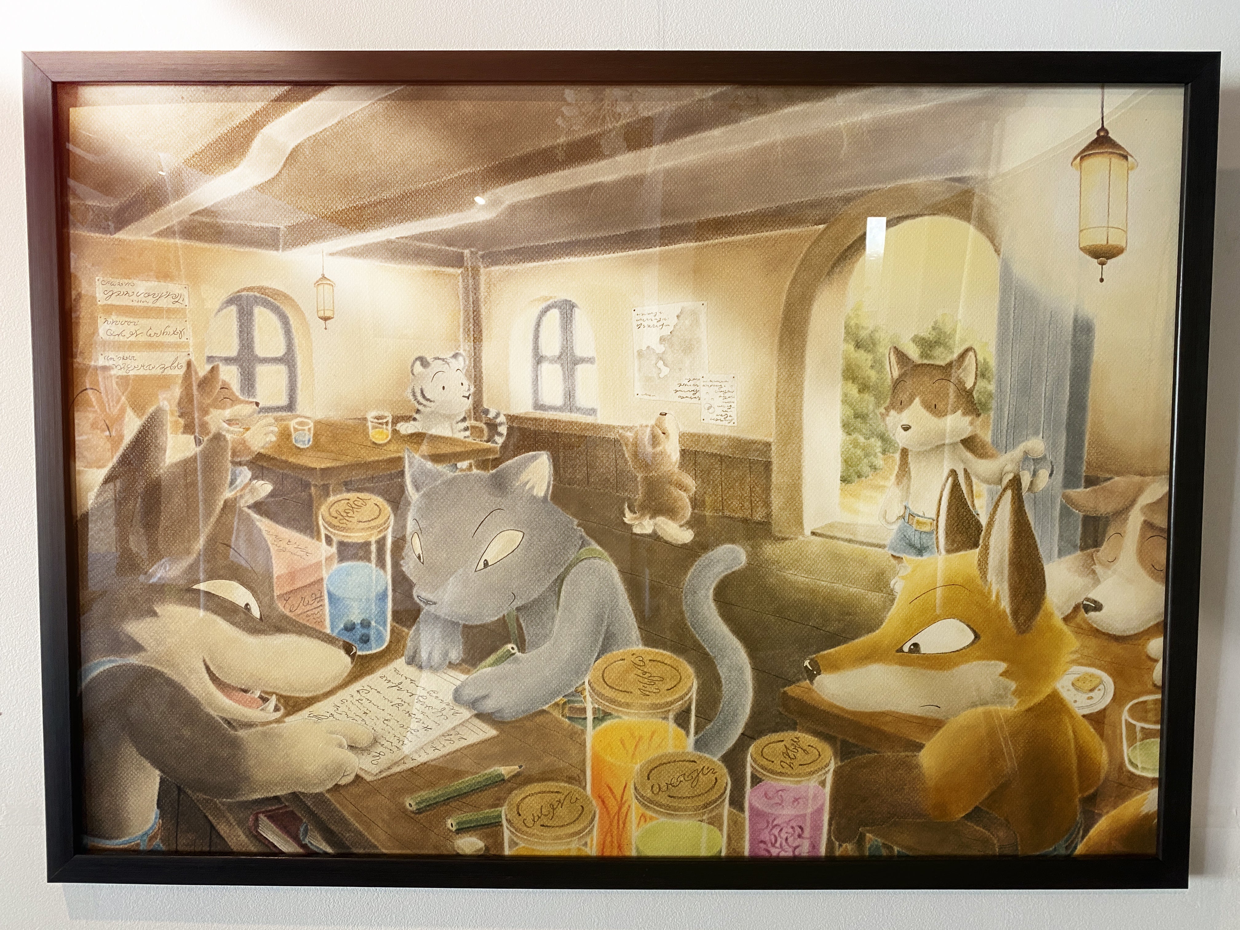 今回の個展では、まだ一般には発表されていない『イストエストものがたり』の絵本を先行公開します。展示される原画をご覧いただき、物語の世界観を体験しつつ訪れた方々がリラックスしながら楽しめる空間を提供します。また、物語に登場するドリンクが飲めるコラボカフェや、ポストカードやステッカーなど、絵本に関連するオリジナルグッズの販売も実施します。