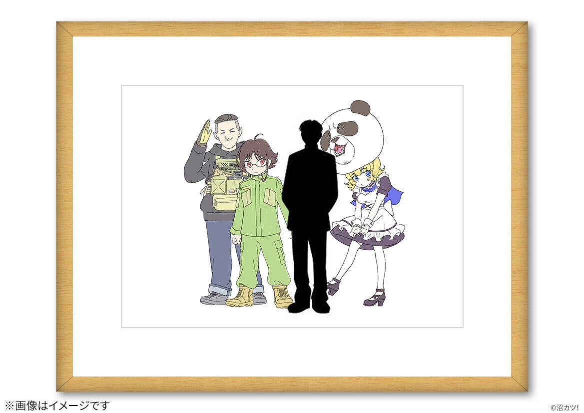 「返礼品②」で作成したP.A.WORKSのアニメーターが描いたあなたと沼カツ!サバゲー部のキャラクターの4ショットイラストを、高品質印刷した一点ものの複製画です。