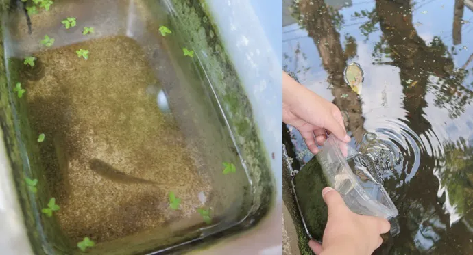 避難させていた小魚を、放流しました。