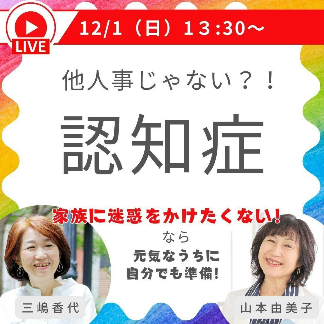 2024/12/01 19:41こんにちは!【認知症】をテーマにfacebookライブをしました。https://www.facebook.com/kayo.mishima.7/videos/1096637705263340我が家の「エビフライ事件」の実例もお話しています(;^ω^)厚労省の推計で、2025年(来年?!)は、65歳以上の約5人に1人が、認知症になるというデータがあります。「自分は大丈夫」と思うでしょうが、そのリスクは誰にも等しくあります。元気なうちに備えましょう(^_-)-☆ もっと見る