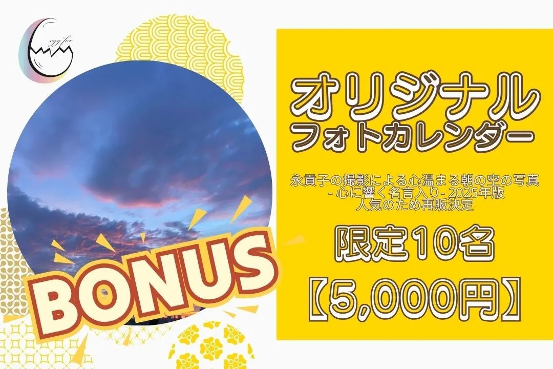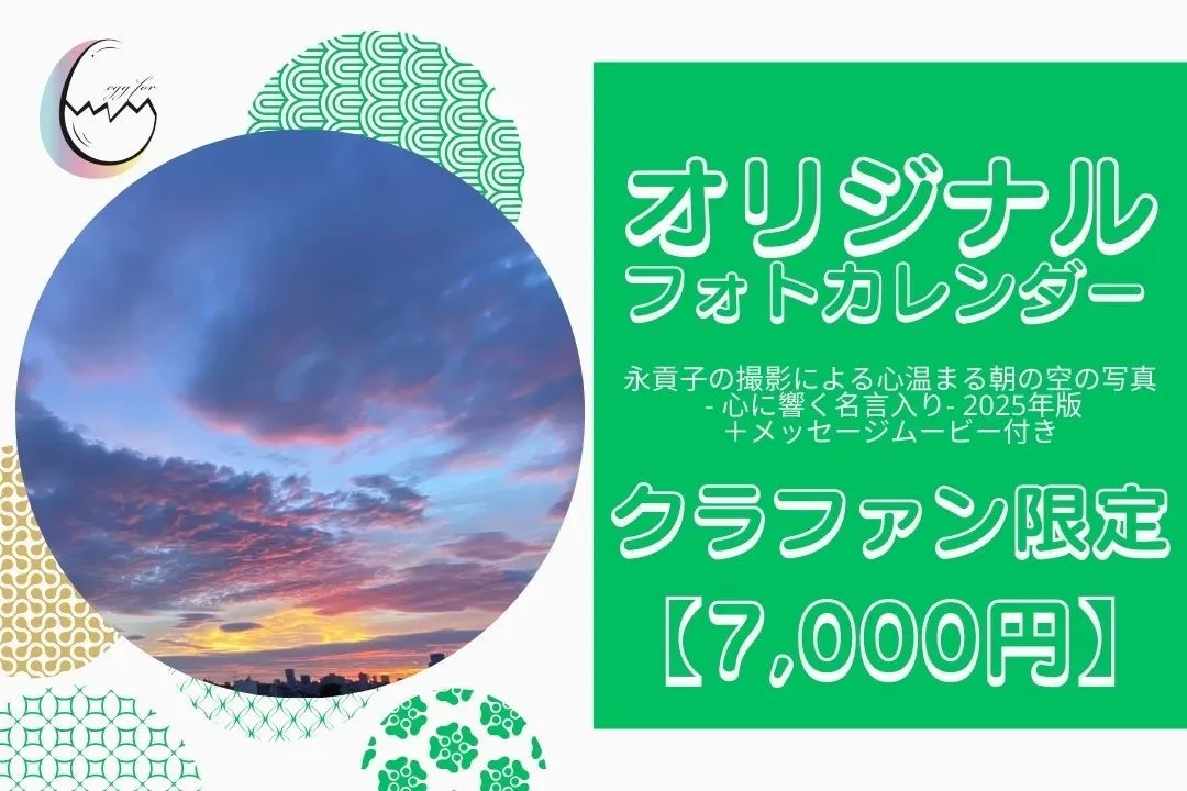 こんな方にオススメ:毎日変わる空模様から受け取る神秘的なメッセージを写真として皆さんとも共有するだけでなく、元氣が出る永貢子の言葉でパワフルな2025年を迎えたい方/永貢子から一度でも空の写真を受け取ったことがある方
