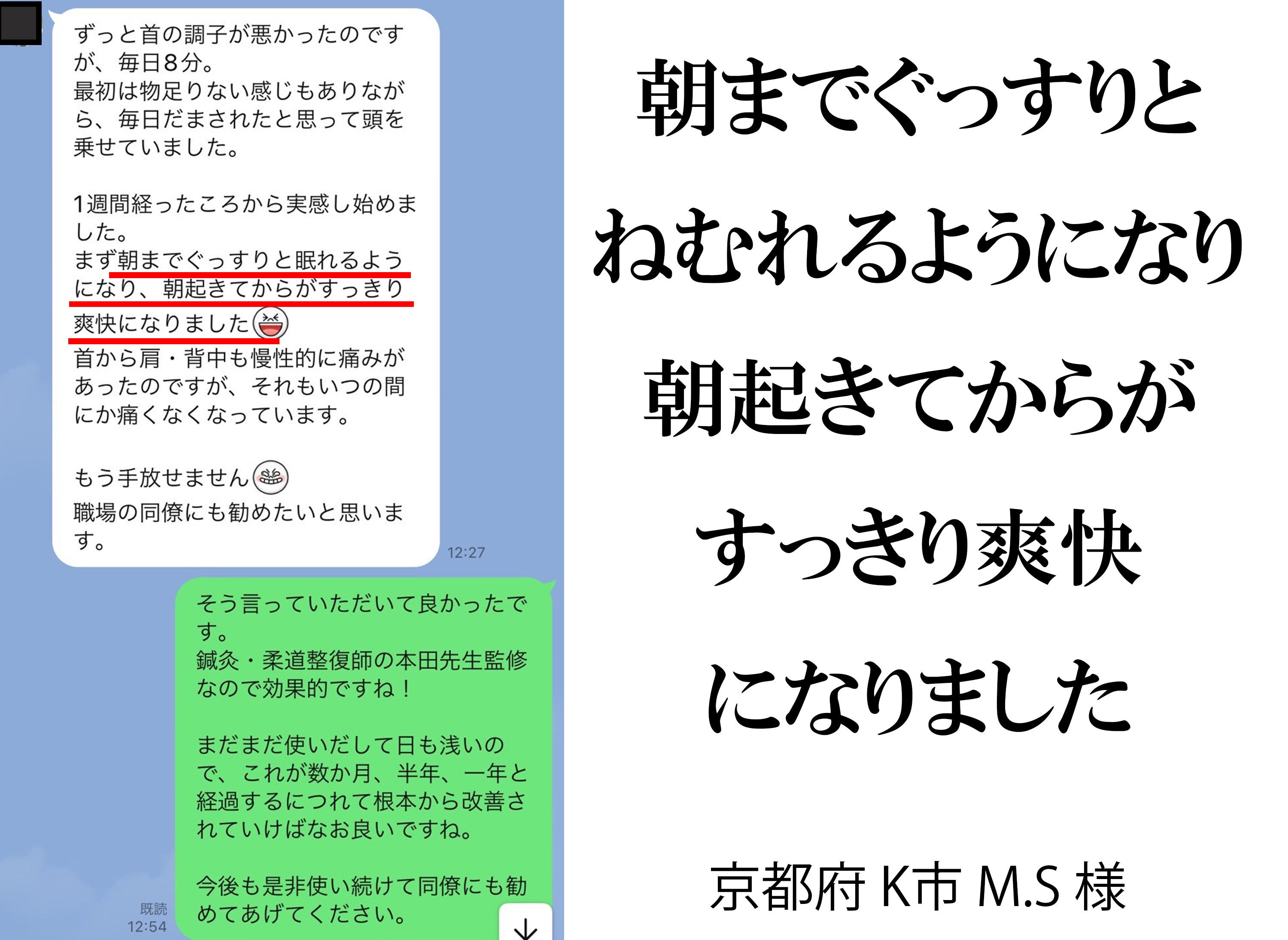 使い続けることで、首や肩の疲れが取れていくことが日々徐々に感じられます。