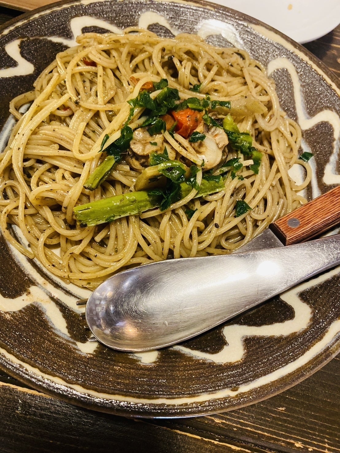 鮭の背ワタの塩辛「めふん」を使ったパスタ。