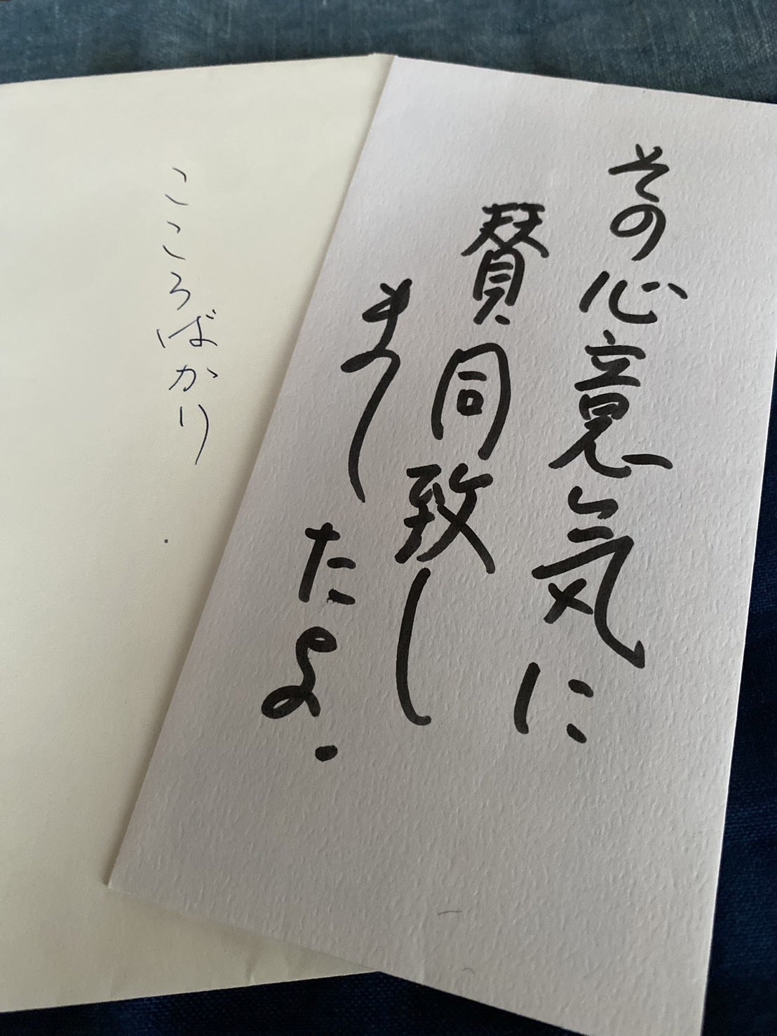 と昔から藍染めをされている人生の先輩が手渡しで渡して下さいました。