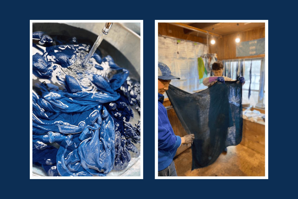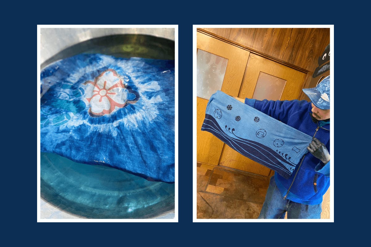 お二人ともグラデーションや絞り少しずつ濃淡をつけて藍染めに集中美しい藍色に心躍らせとても楽しんでいらっしゃいました。