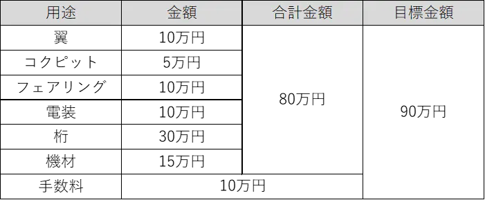 皆様からの支援金は機体の材料費と機体製作に必要な機器の購入に充てます。