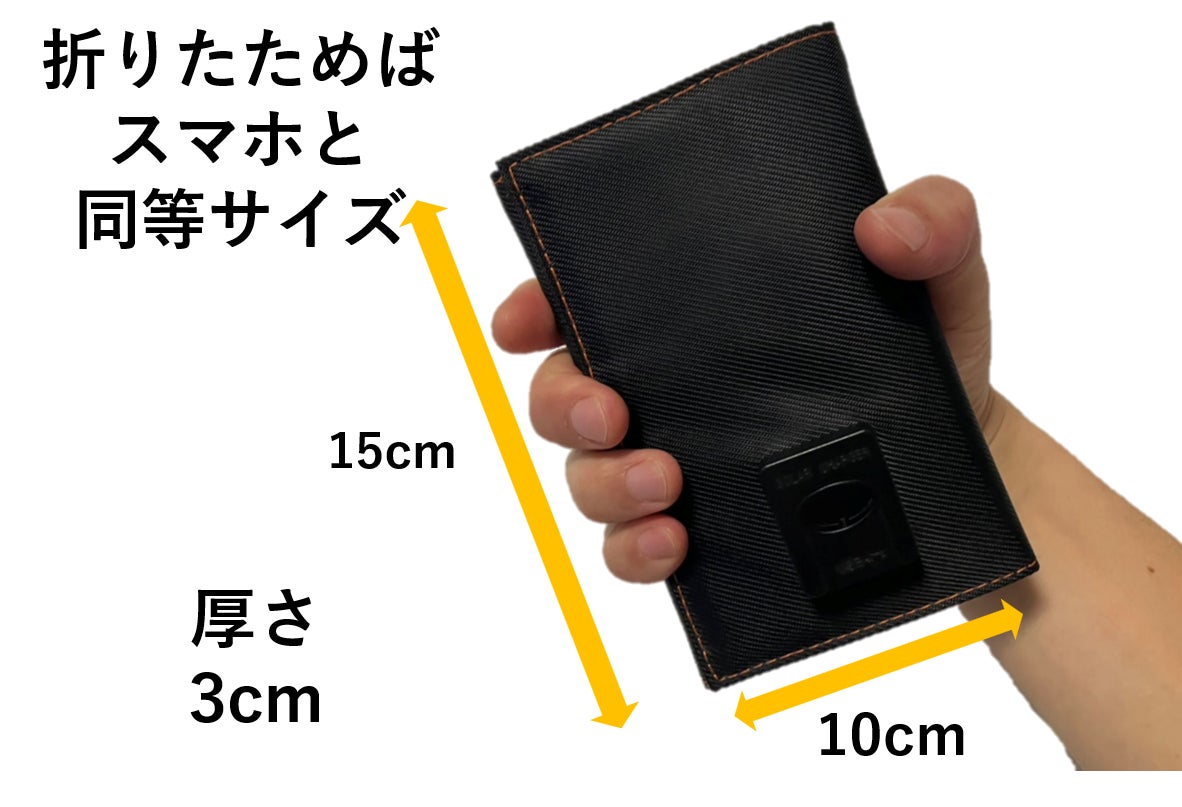 折り畳み時は、幅約10cm×高さ約15cm×厚さ3cmと超コンパクト!!