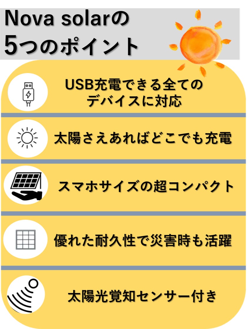 防災、日常生活、さらにアウトドア用品として、Nova solaがあなたをフルサポートします!
