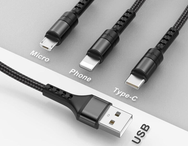 USB-C /マイクロUSB / iPhoneの3種類のケーブル