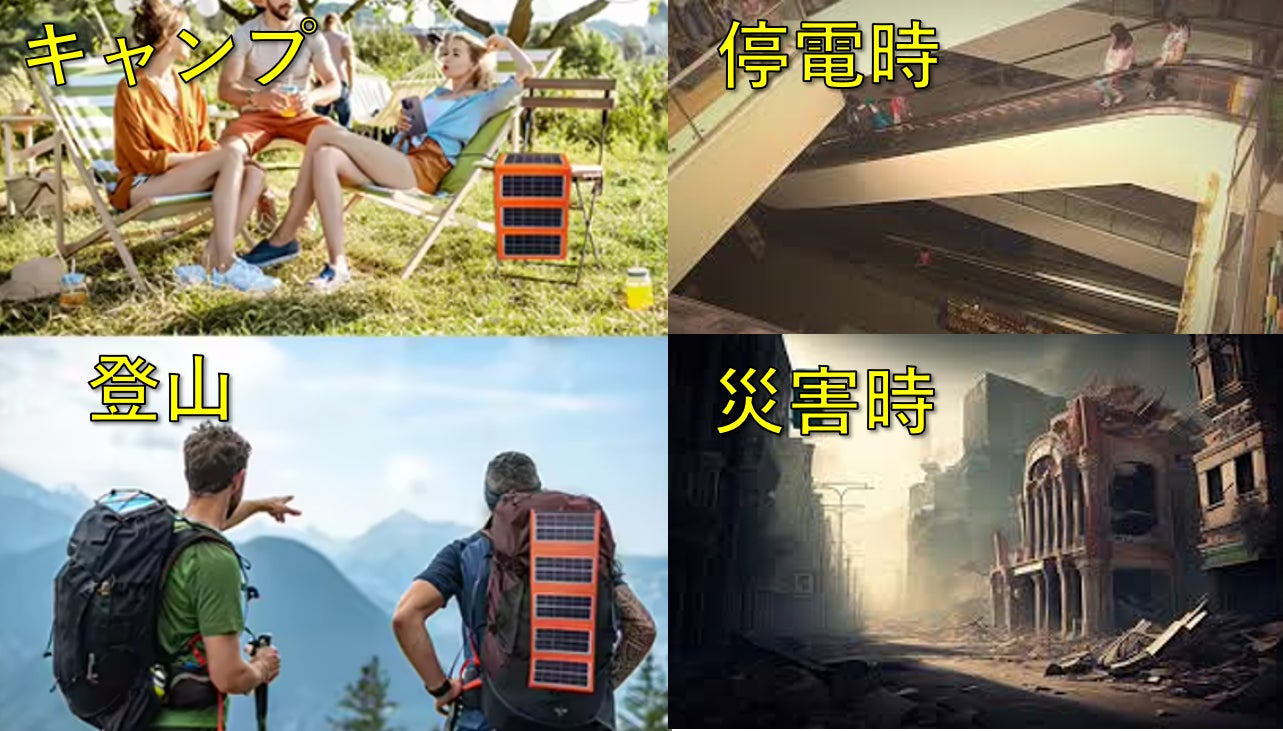太陽光さえあればどこでも使用出来るので幅広いシーンで日常や不意の災害の時、あなたや家族をサポートします。
