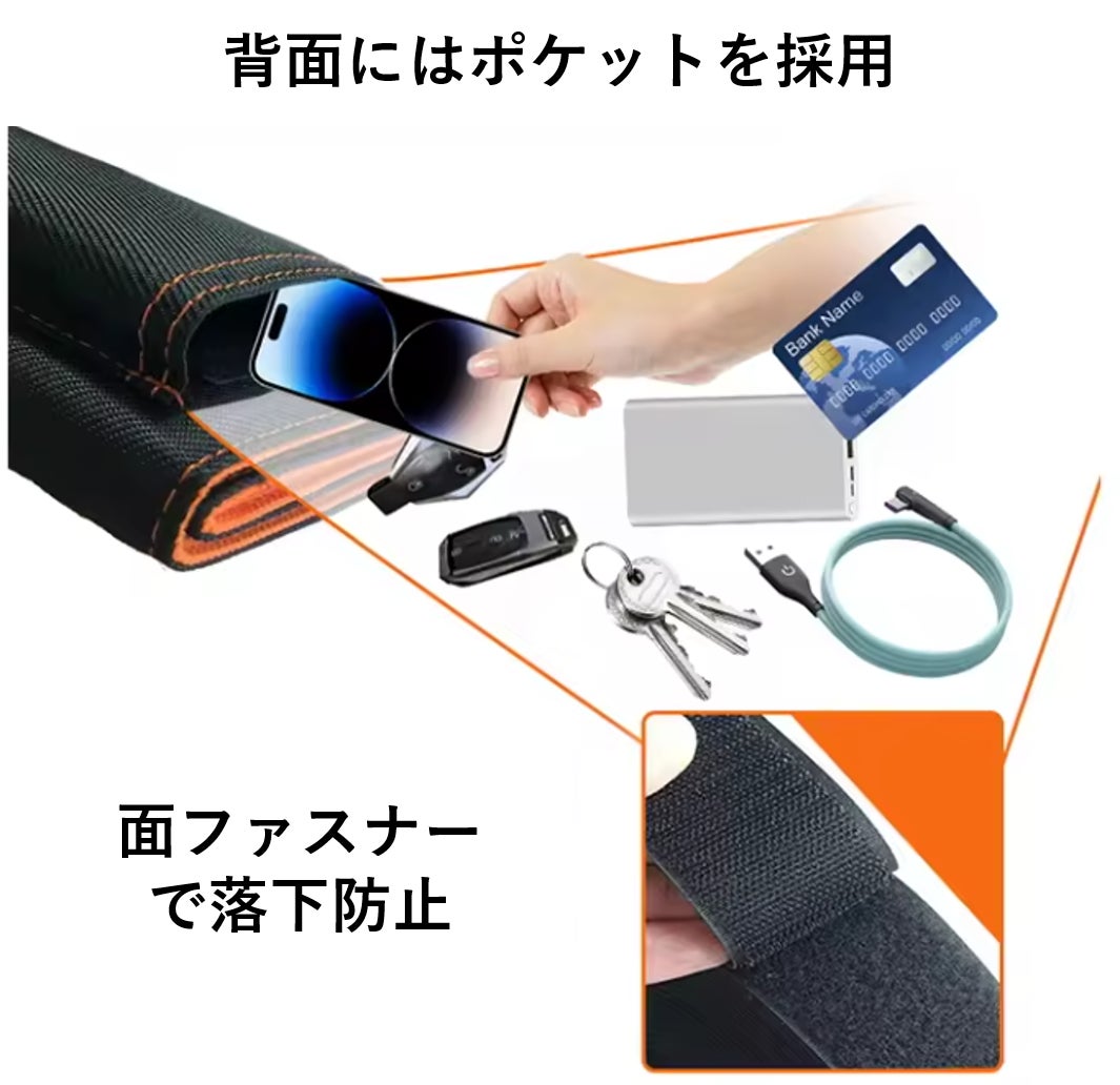 背面にはポケットがあり、スマホやモバイルバッテリーの収納が出来ます。