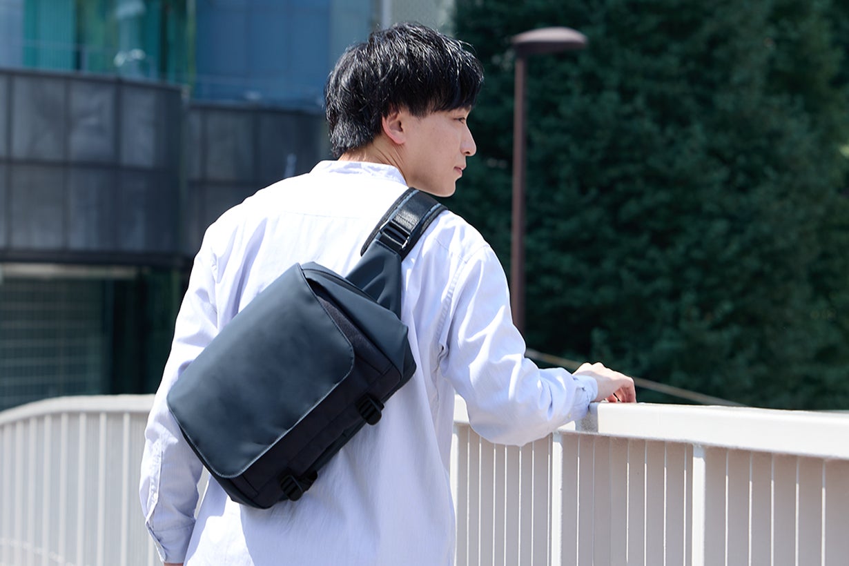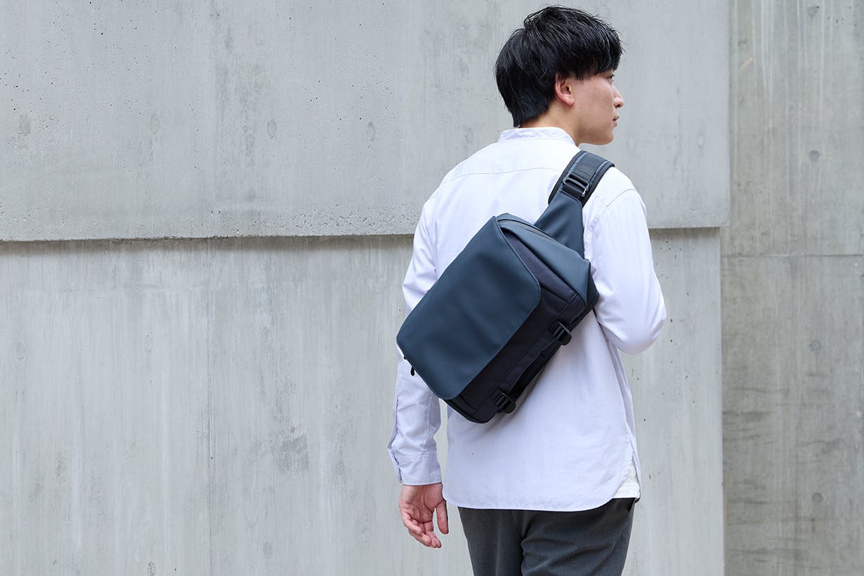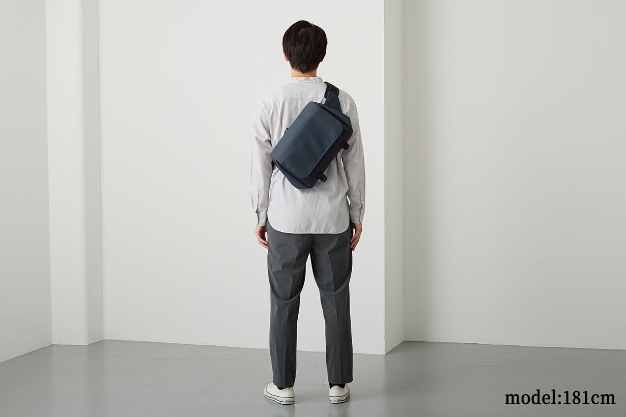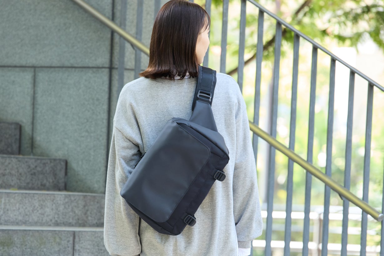 PC対応でさらに進化した傷に強く汚れても簡単に綺麗になる。大人の日常使いに最適なスリングバッグ。