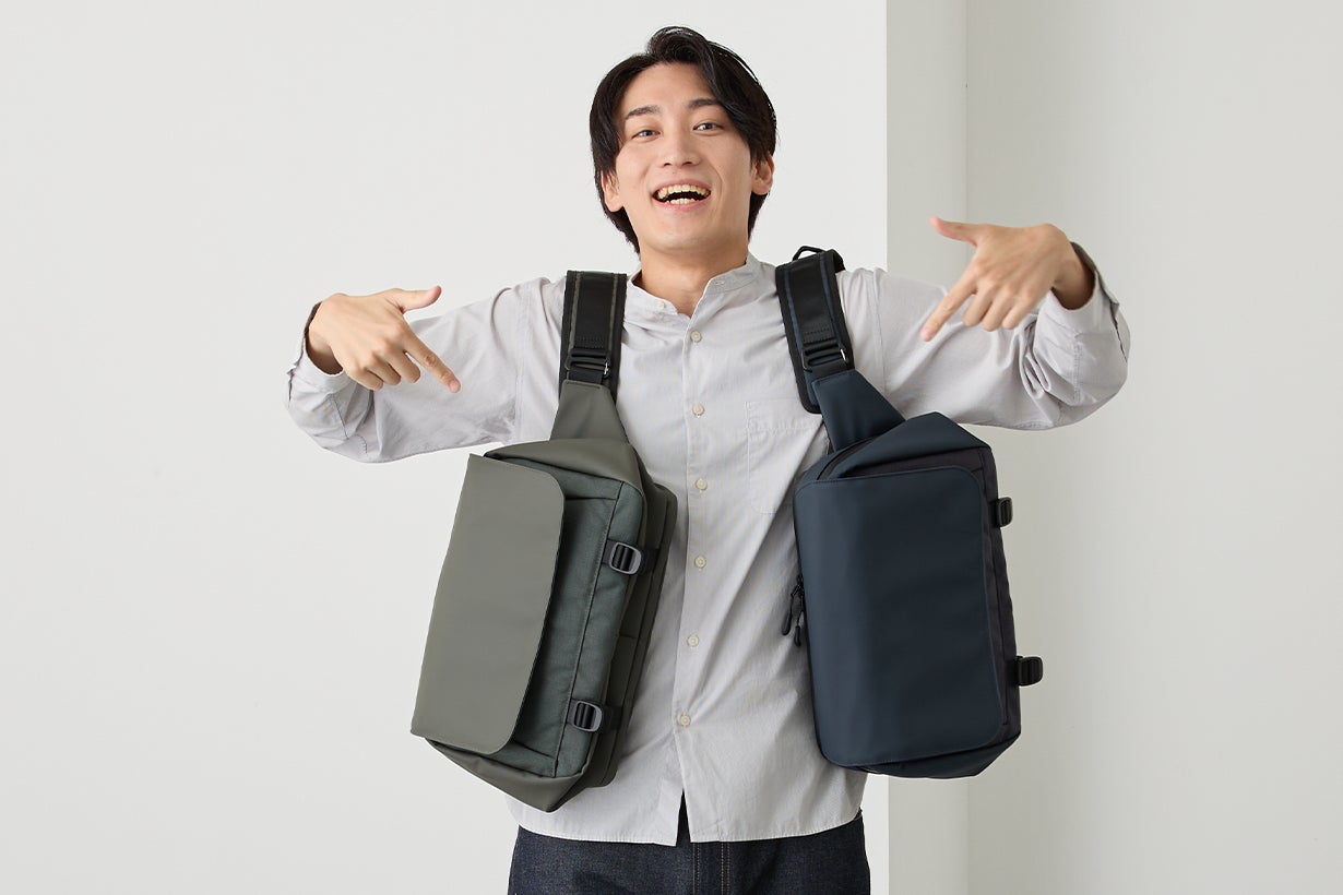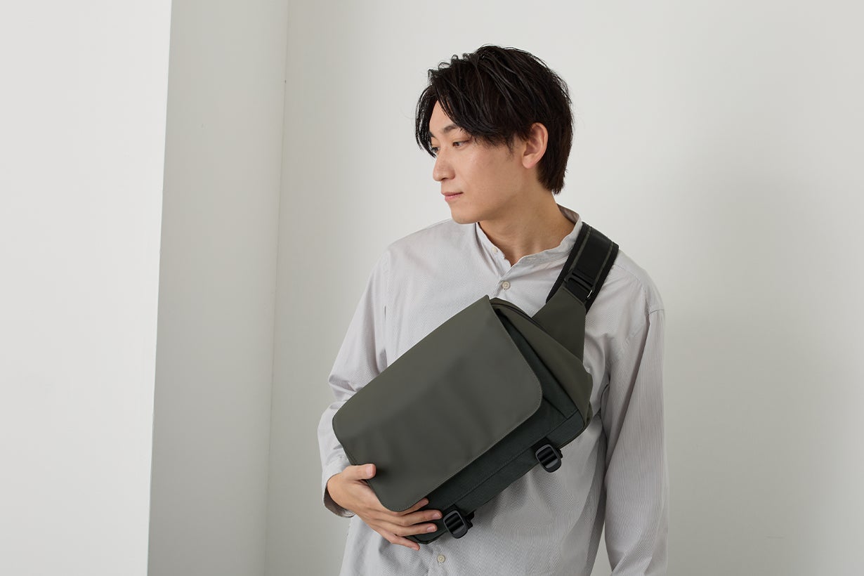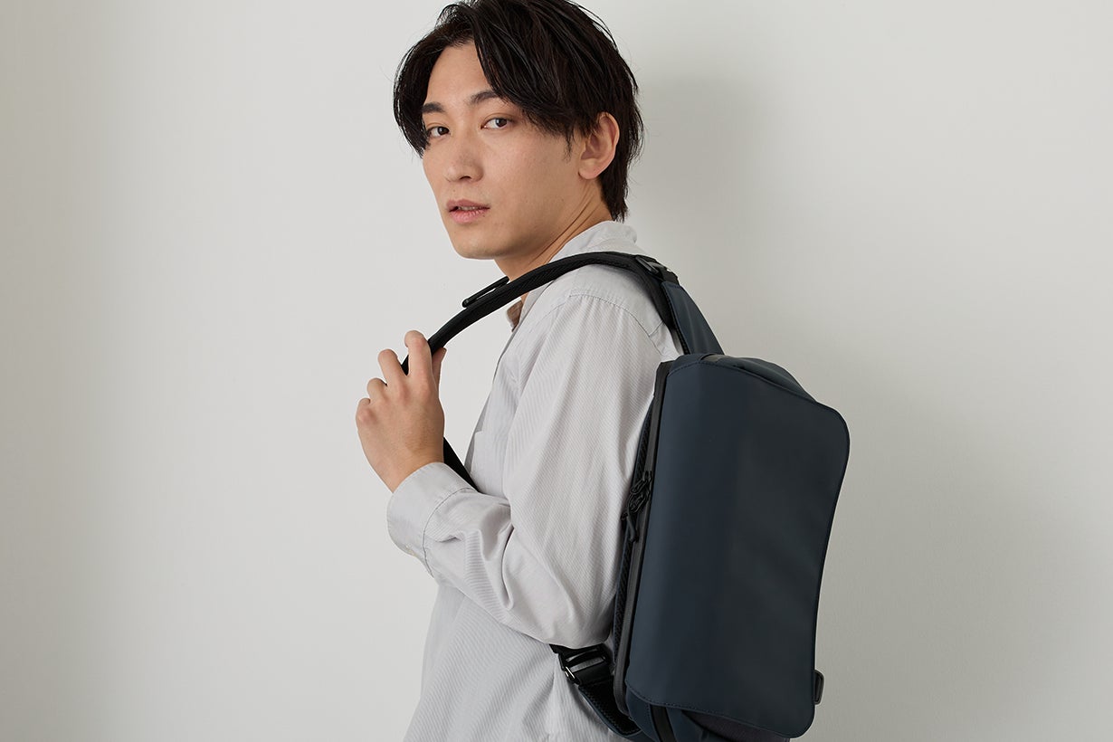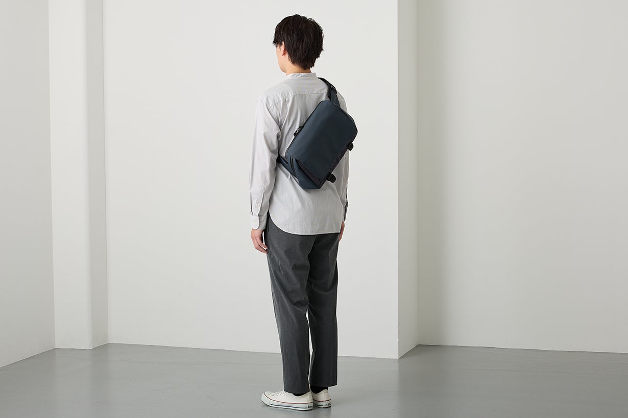 PC対応でさらに進化した傷に強く汚れても簡単に綺麗になる。大人の日常使いに最適なスリングバッグ。