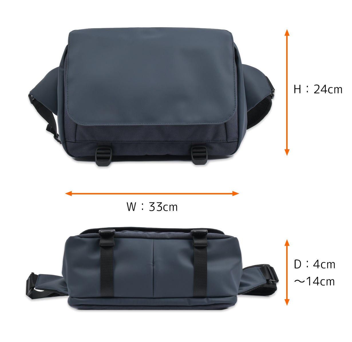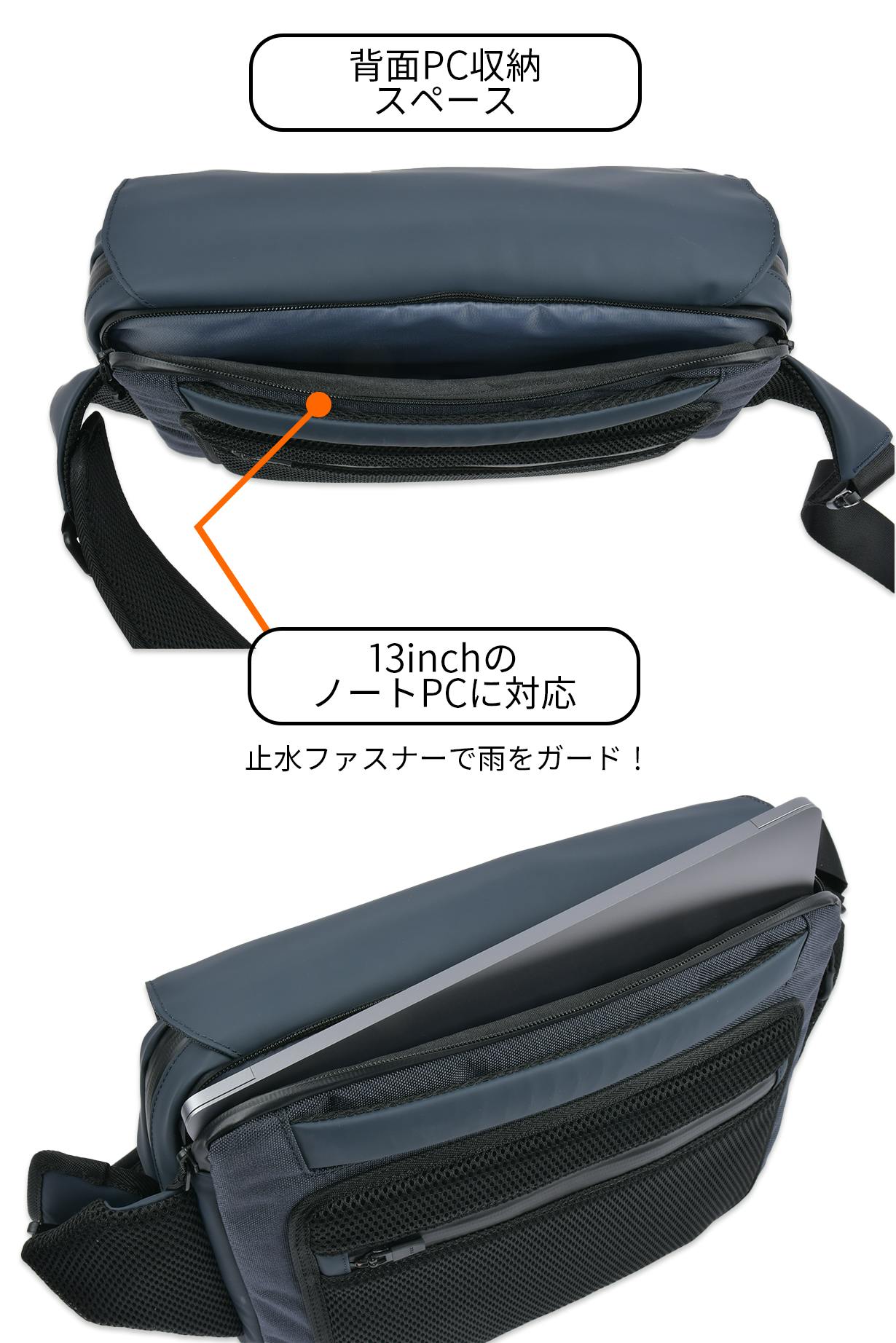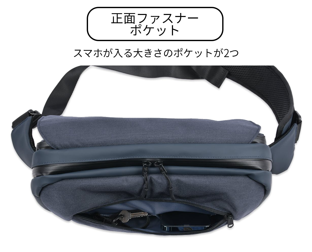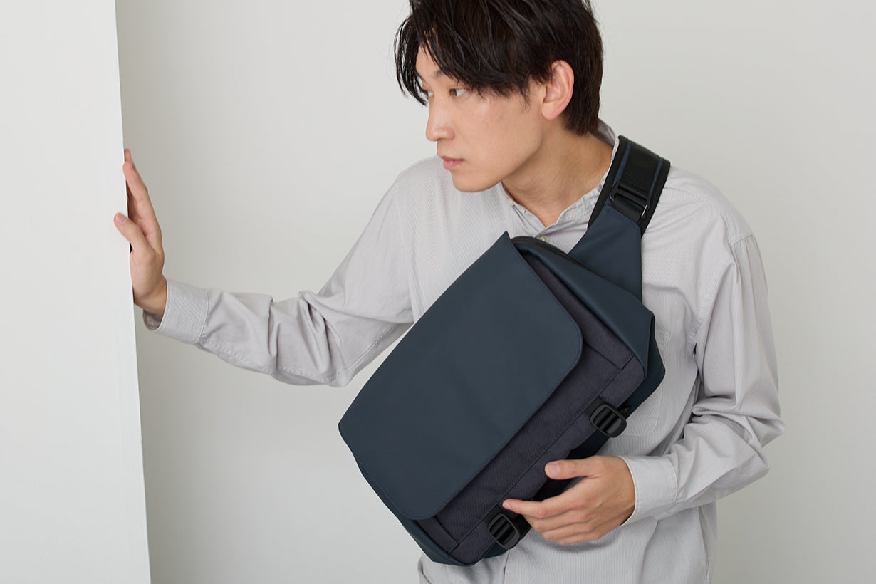 PC対応でさらに進化した傷に強く汚れても簡単に綺麗になる。大人の日常使いに最適なスリングバッグ。