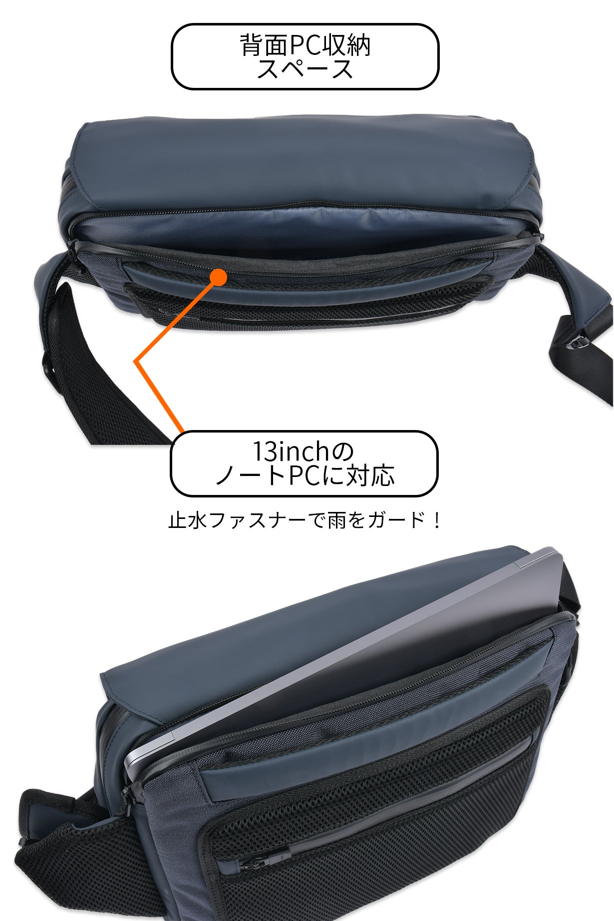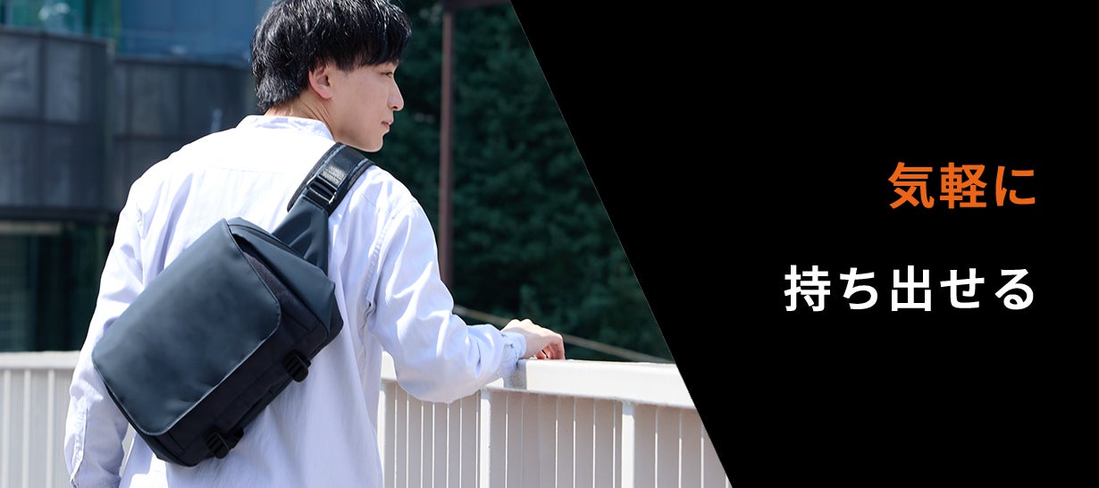 長年綺麗に使える高耐久のスリングバッグで、PCの持ち運びが快適になります。