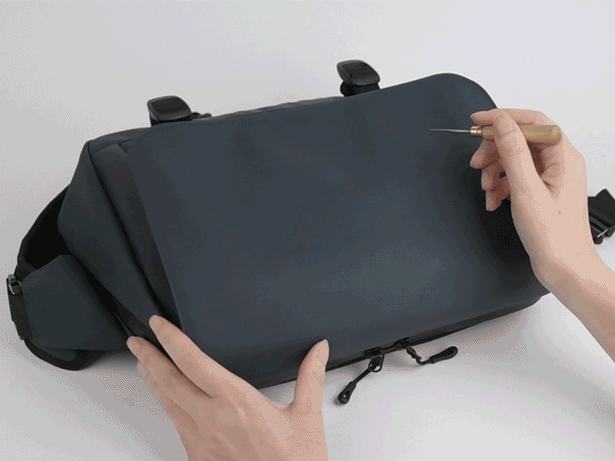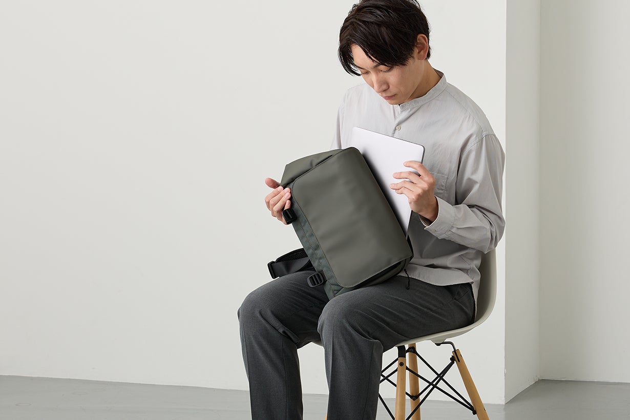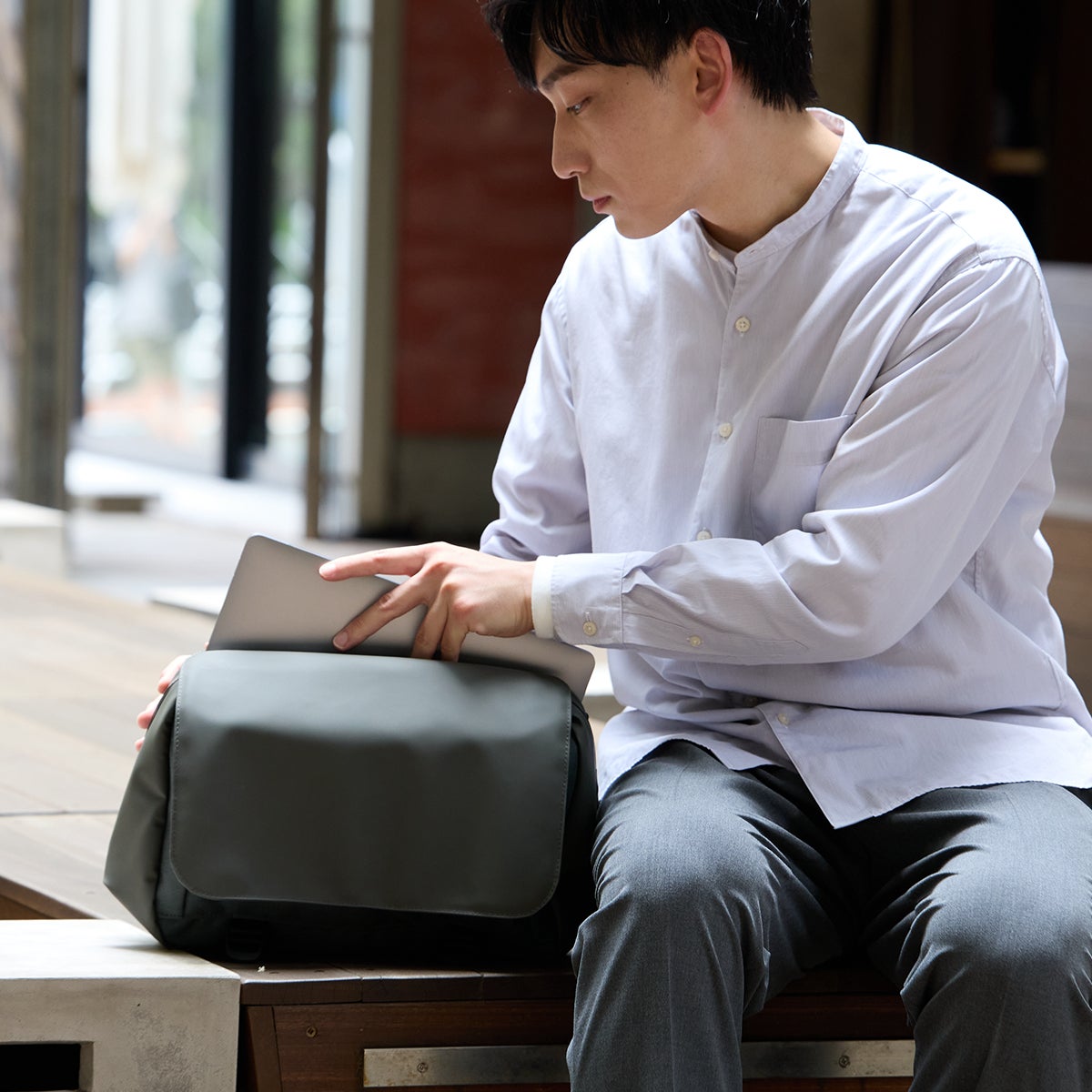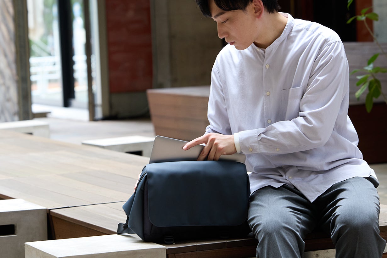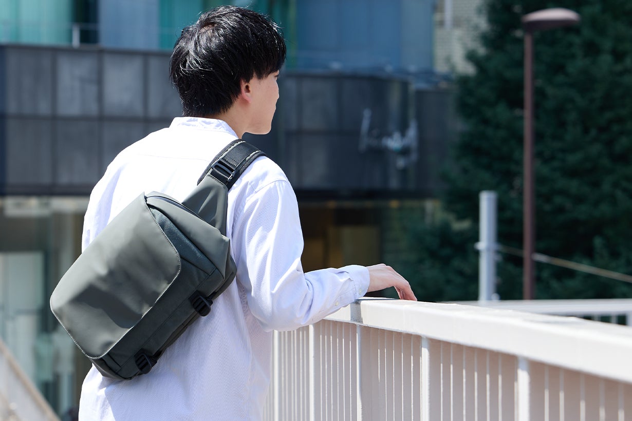 デザイナー自身PCを持ち運ぶ時にはリュックを使っていますが、ユーザー様からの声を受け、改めて考えてみるとリュックでPCを持ち運ぶ時に感じていた不満や煩わしさをスリングバッグなら解消でき、快適に移動できる事に気付きました。