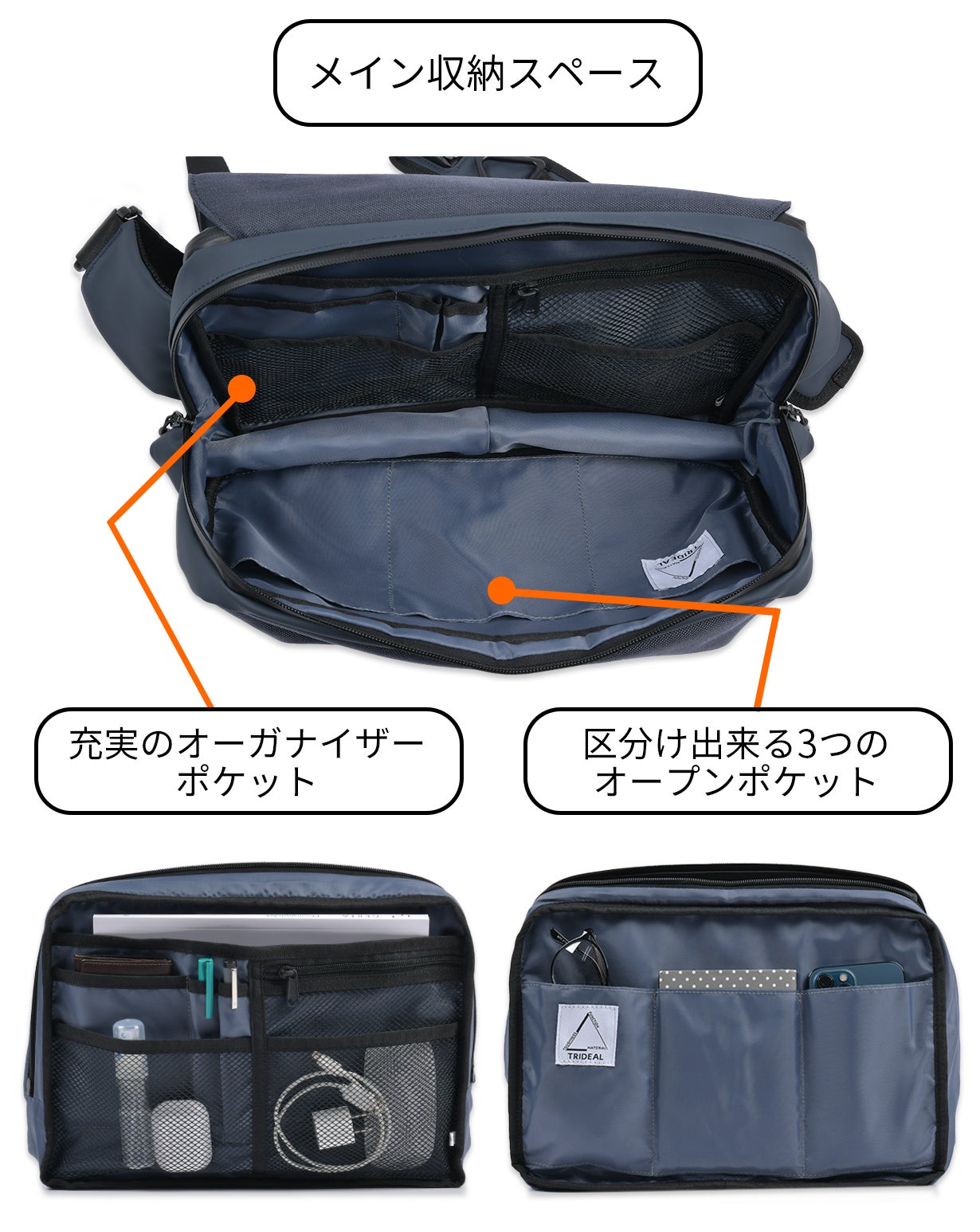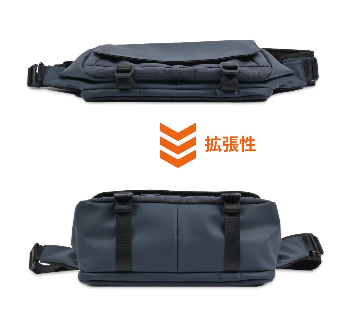拡張が出来ることで、普段は必要最低限の荷物で身軽に出かけて、荷物が増えたときも拡張することで対応ができるので、いつでもこのバッグ一つで出掛けられる設計になっています。