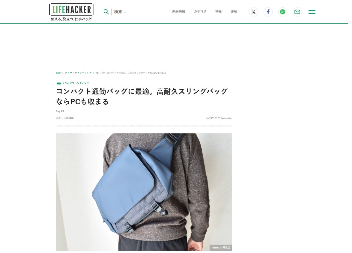 タフビッグスリングバッグが、ライフハッカーで紹介されました!