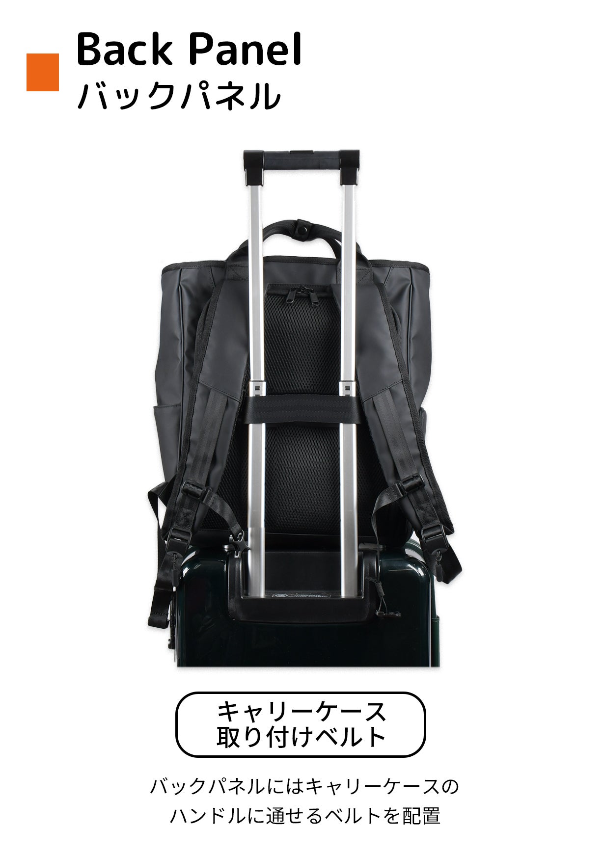 一見するとシンプルなバックパックにこれだけの機能性が詰まっています。