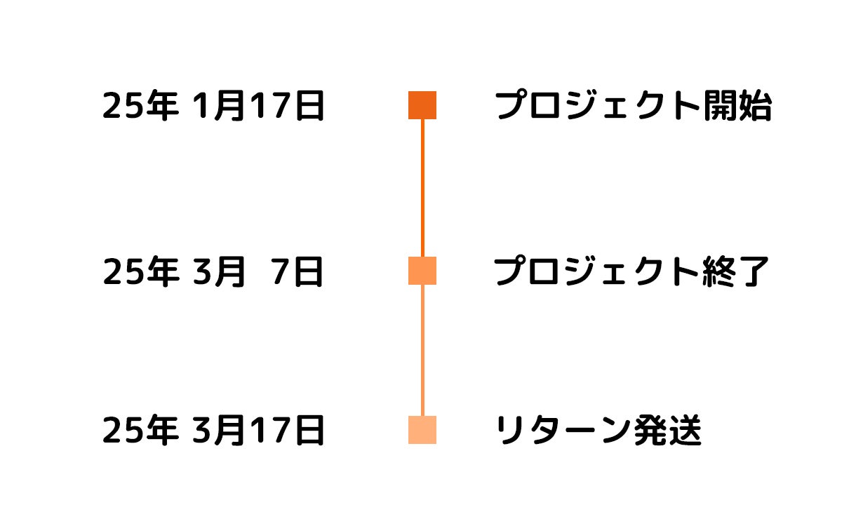 ●引渡し時期: 各リターン詳細に記載の発送予定月を引き渡し時期とします。但し、開発・生産状況によって遅れが生じる場合がありますのでその際は当プロジェクトページ内の「活動報告」または購入者へのメール等で連絡します。