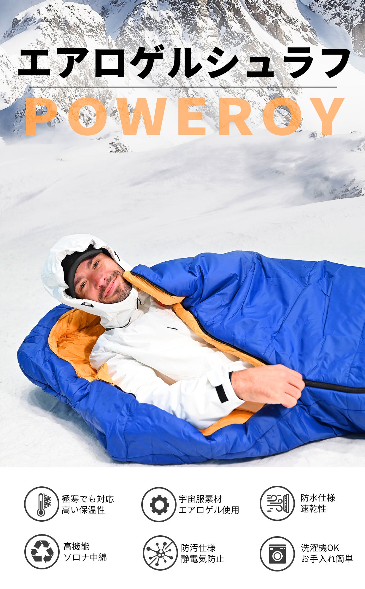 「POWEROY」は、エアロゲル素材と高機能中綿ソロナをふんだんに取り入れ「温かさ」と「柔らかさ」を実現しました。