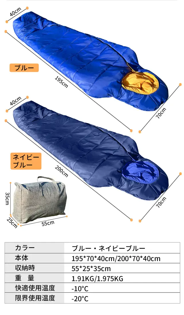 キャンプの寝袋としてはもちろん、車中泊や掛け布団としてなど幅広い用途でご利用いただけます。