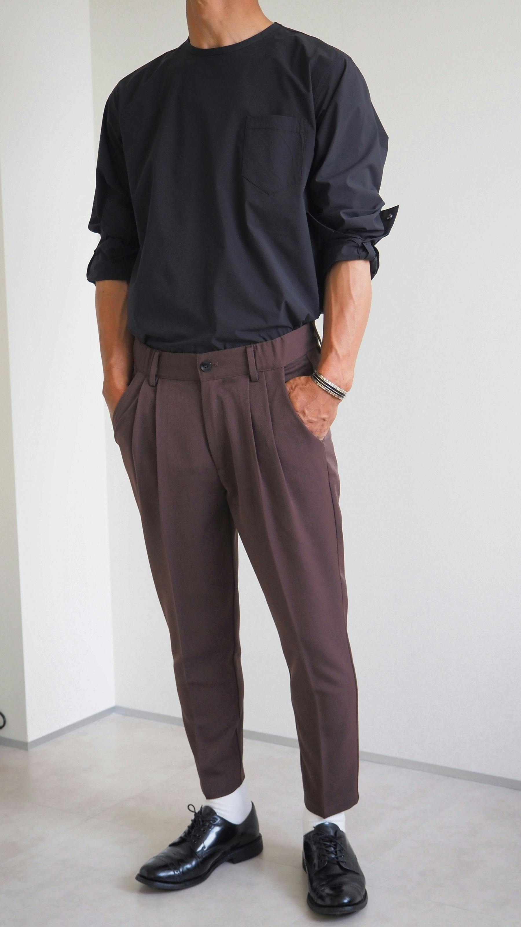 ★シャツの場合だと黒シャツを着るのは少々ハードルが高いですが、大人ロンTであれば大丈夫。シャツ感覚はそのままに、気軽に黒を取り入れる事が出来ます。仕事着でも普段着でも、落ちついた大人の色気を演出します。