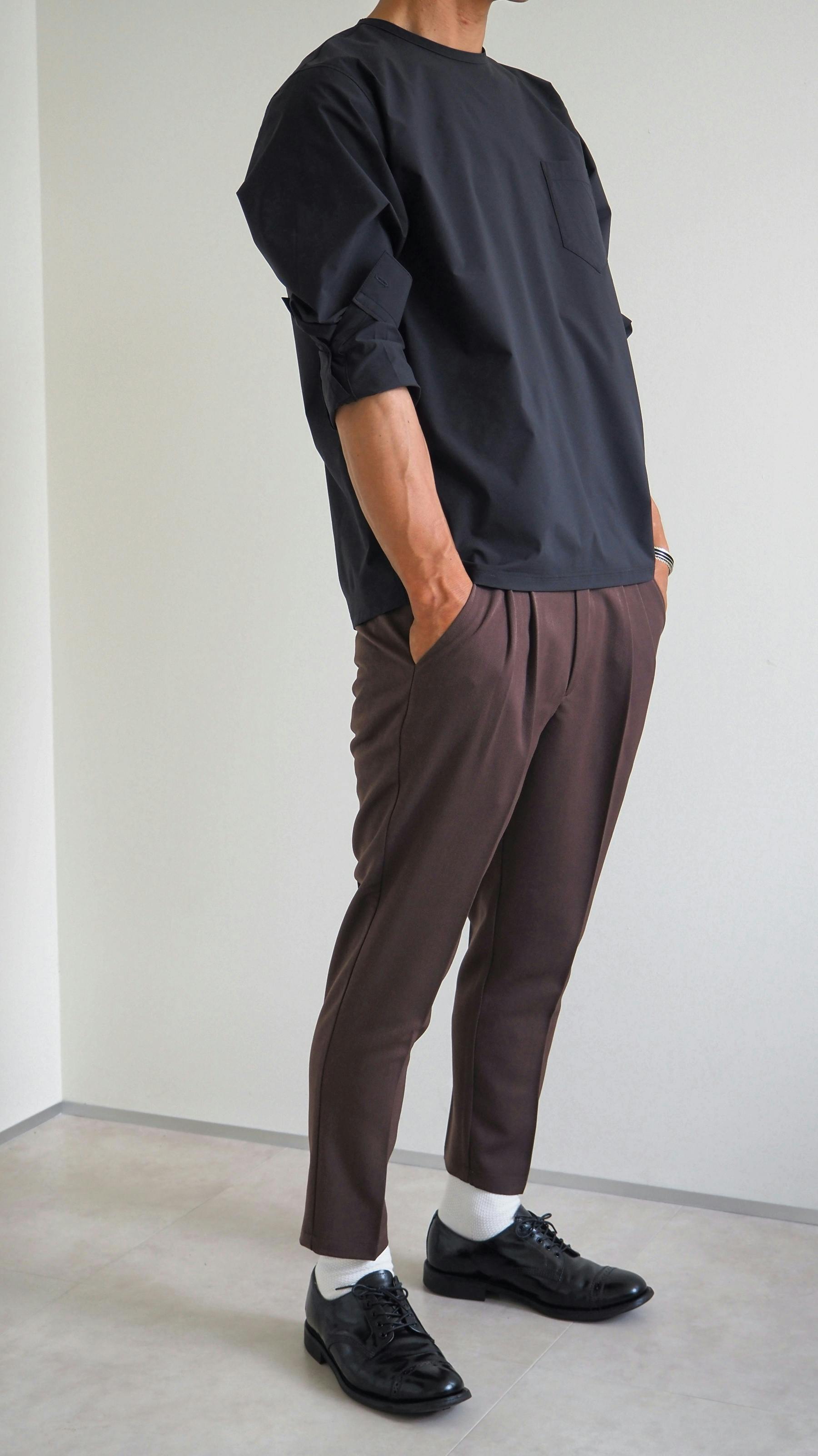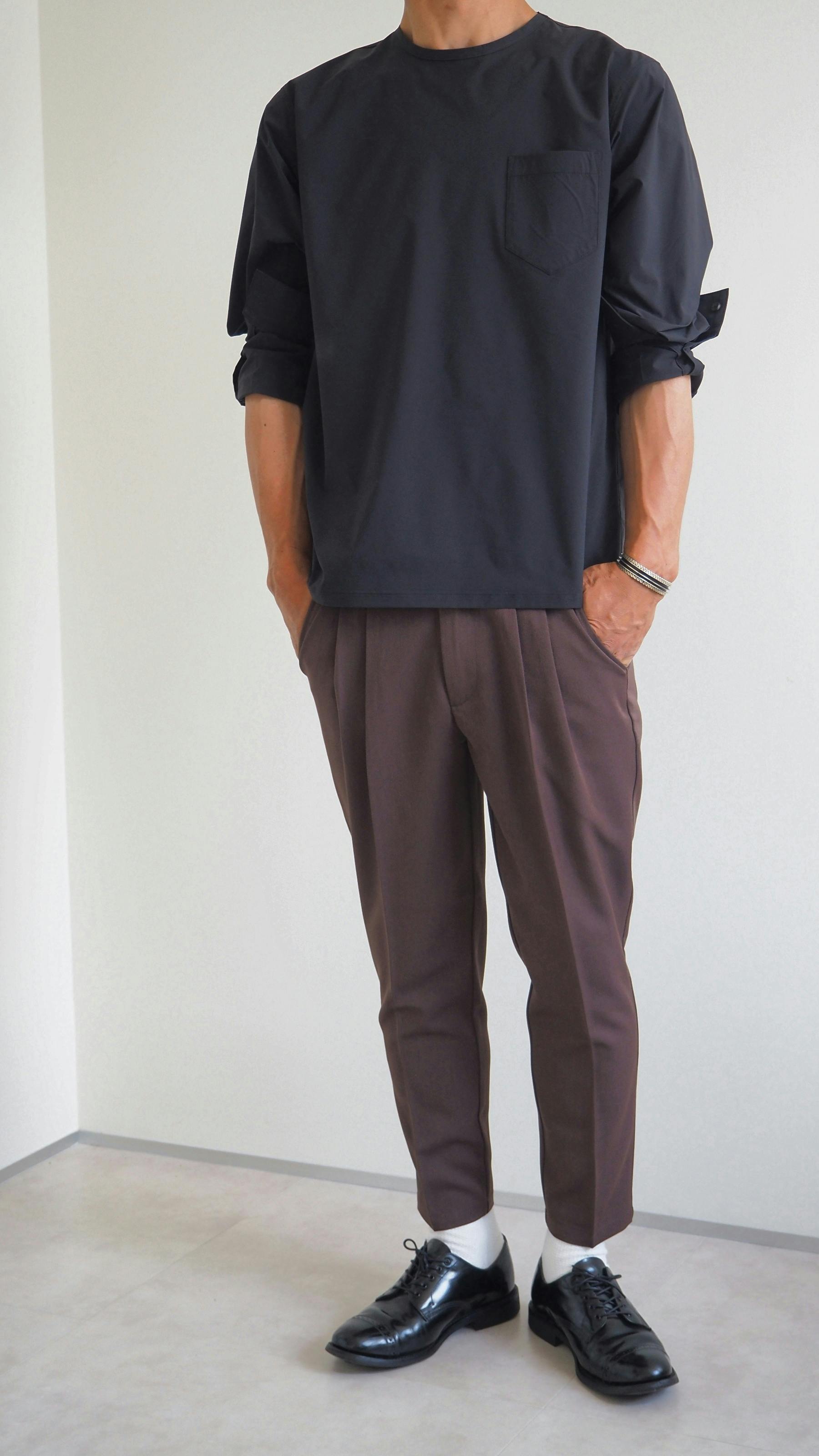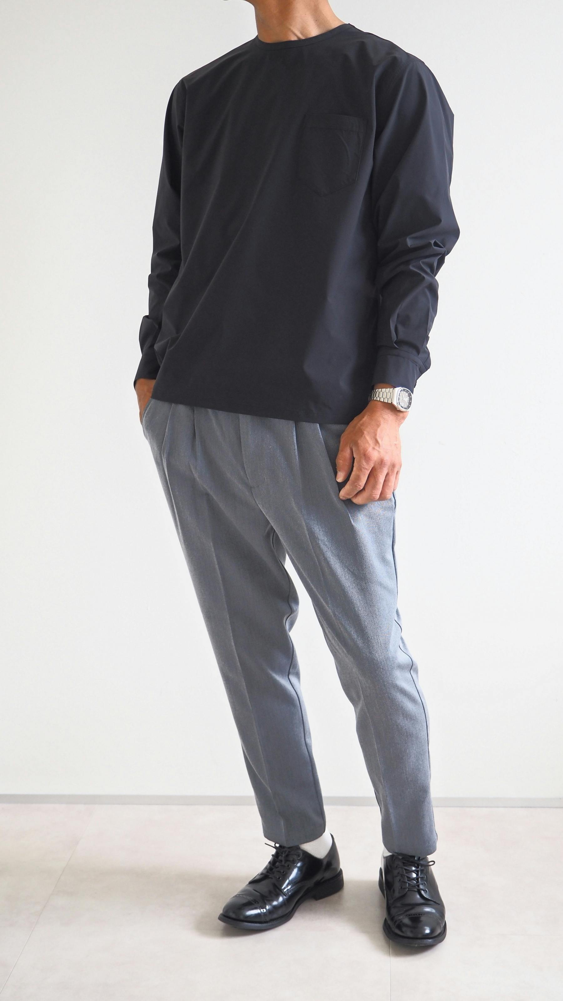 ★カジュアルパンツとも相性抜群。ビジ↔カジ、二刀流なロンTです。