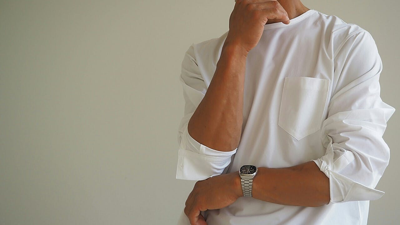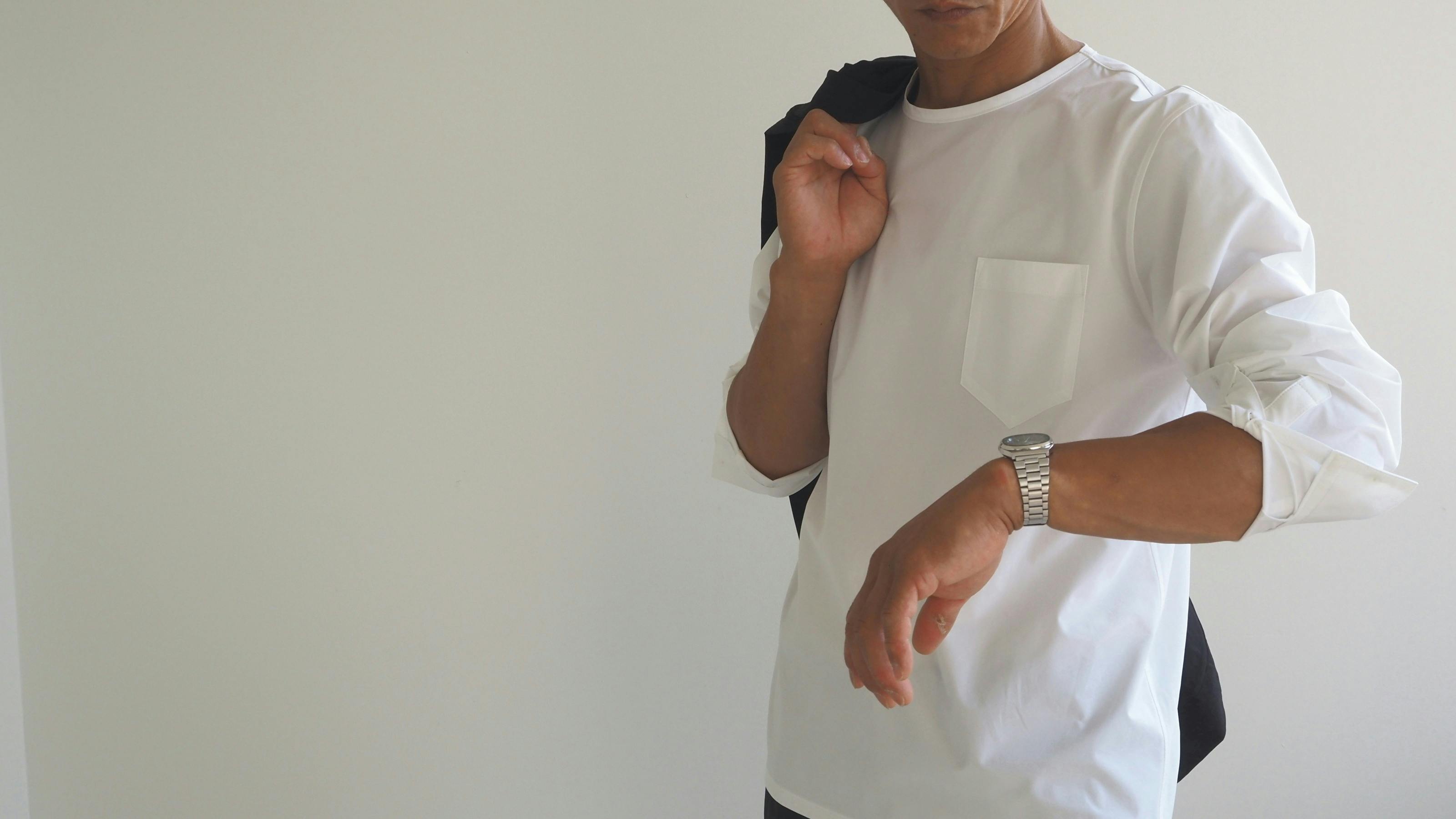 ・かといって、長袖Tをスーツのインナーにしても、ジャケット袖口から覗く長袖Tの袖口がだらしなく見えて、それはそれで違和感が出る。