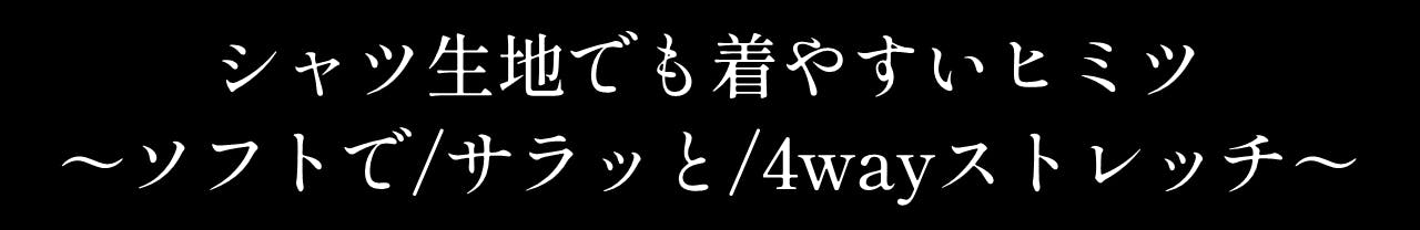 と思ったそこのアナタ、ご安心下さい。この生地はタテ/ヨコ/ナナメに伸びる4wayストレッチなのでシャツ生地特有の堅苦しさが無く、その柔らかでサラッとした風合いは肌離れも良く、とても着心地が良いです。生地の見た目は光沢を抑えたマットな表面感で、落ち着いた大人の雰囲気に仕上がっています。