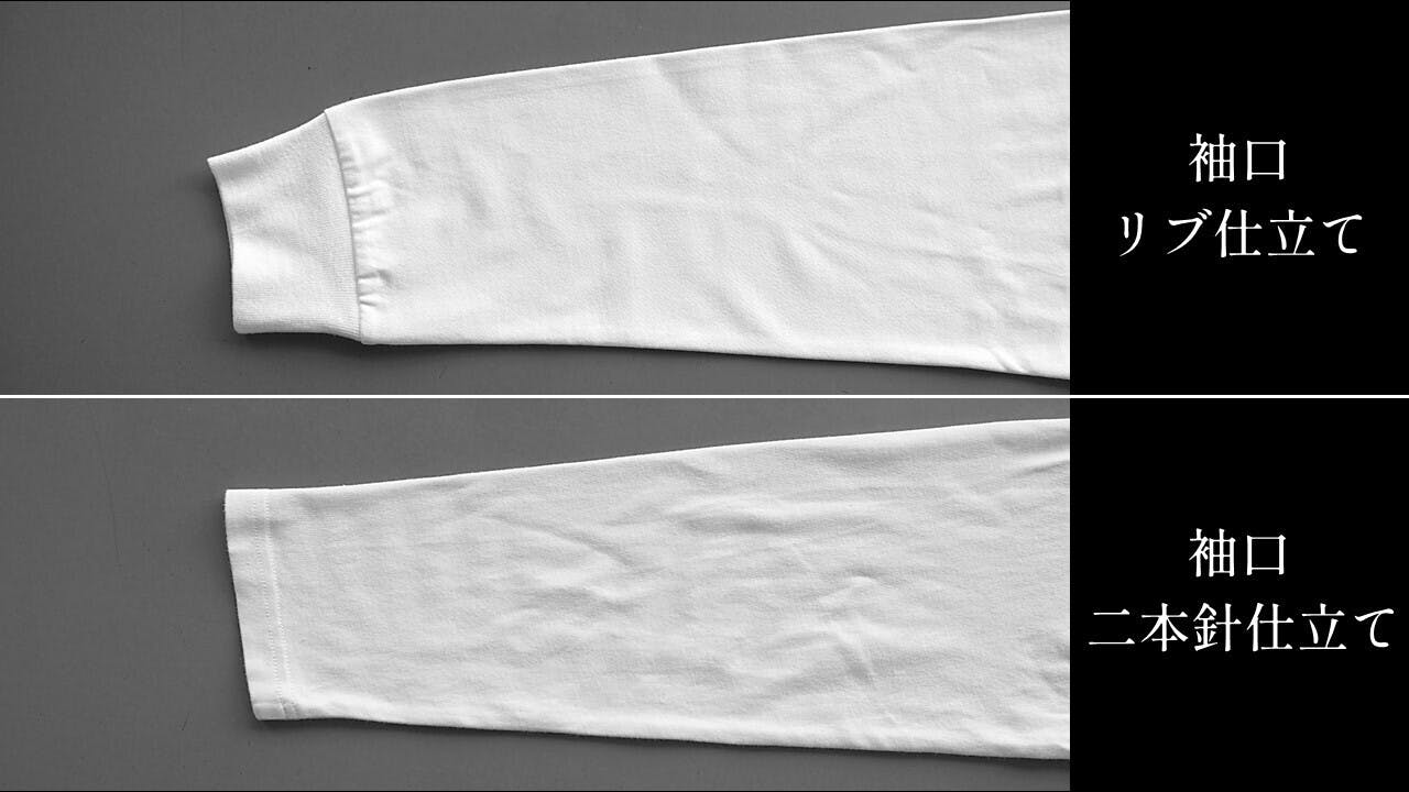 通常、ロンTの袖口といえば下写真のように「リブ仕立て」や「二本針仕立て」のいずれかになります。