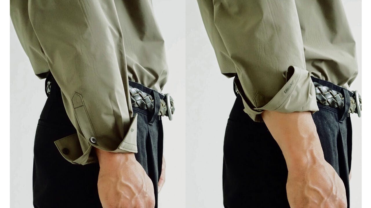 当製品はその袖口をシャツの仕様、つまりは「カフス仕立て」にしています。