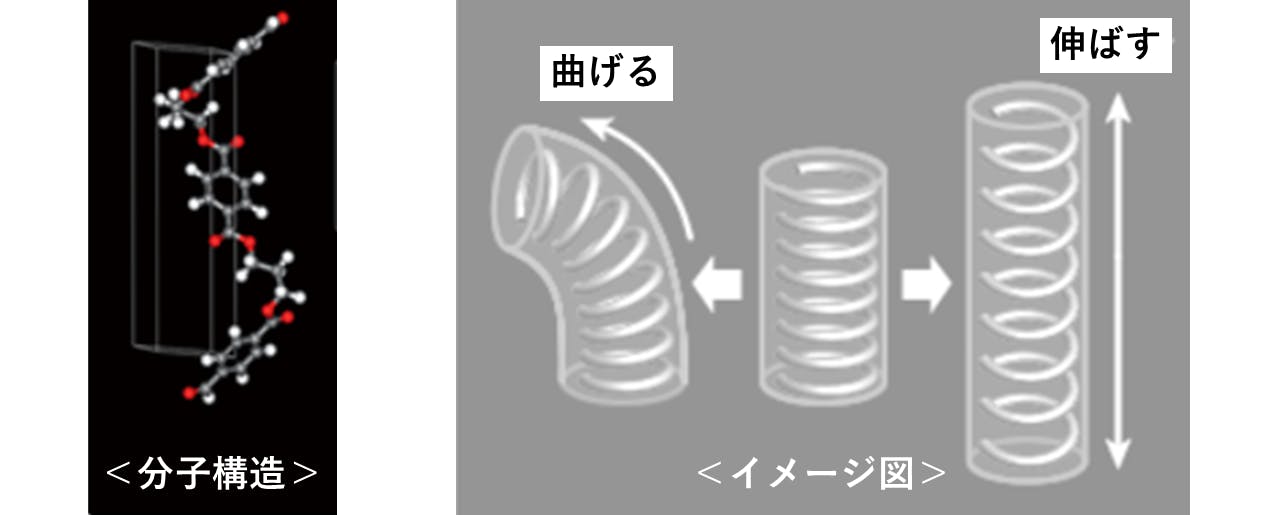 バネ状(らせん状)の形をした繊維分子構造により、生地に動きや力を加えても元に戻ろうとする形状回復性を発揮し、その結果生地がシワになりにくく美しいシルエットを保ちます。