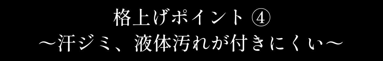 この撥水性により生地に汗が染み込まないので汗ジミにならず、液体が付着してもすぐに染み込む心配はありません。
