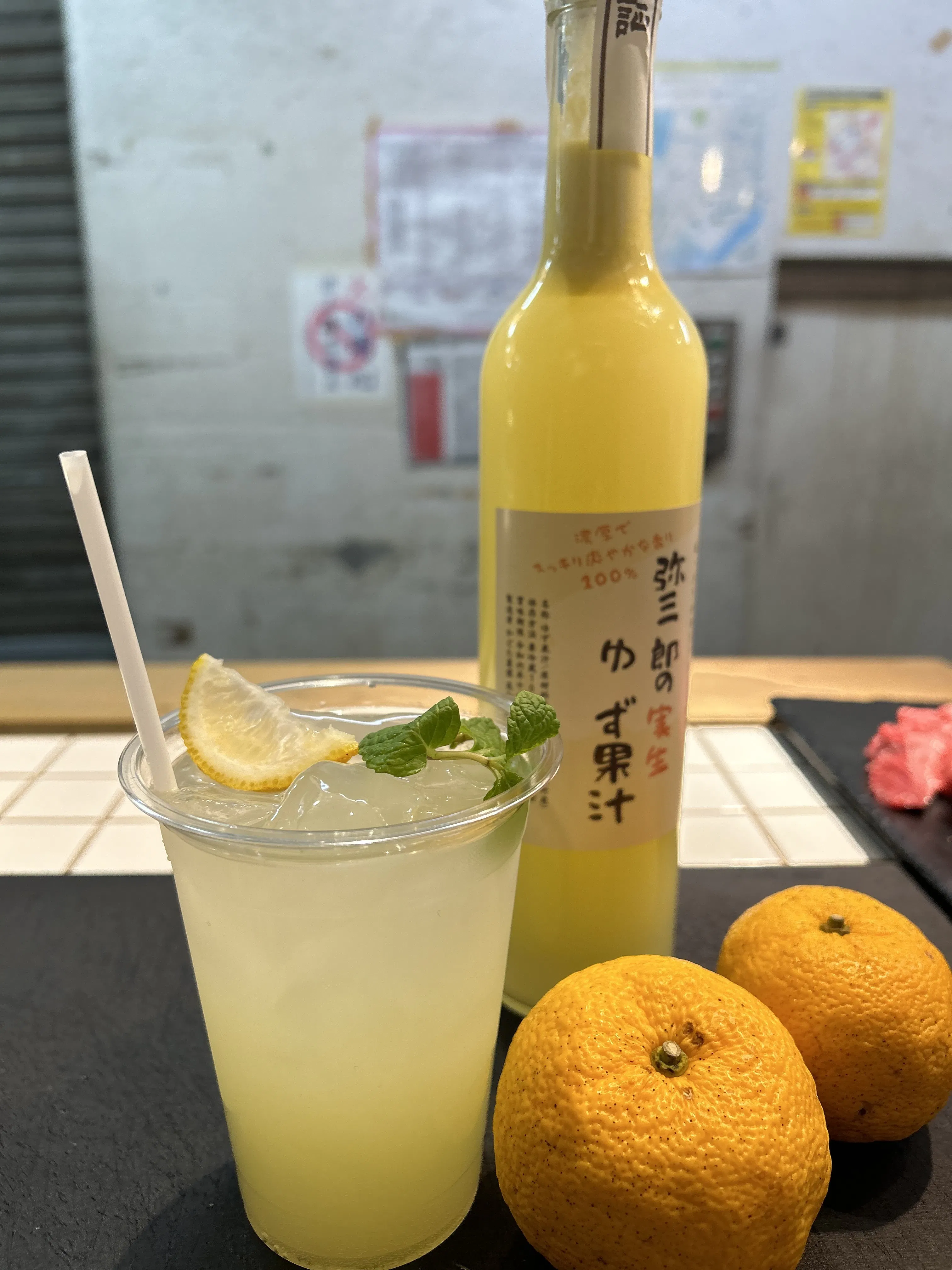 絞っただけの柚子がこんなにも爽やかで濃厚!あまりの美味しさに感動し直ぐに東京の築地にあるお店で試験的に柚子ドリンクにして提供したのが約1年前のことでした。