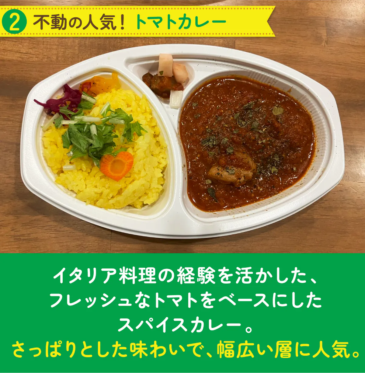A:3種類ほどの日替わりカレーになります。その日のメニューはインスタグラムからご確認ください。