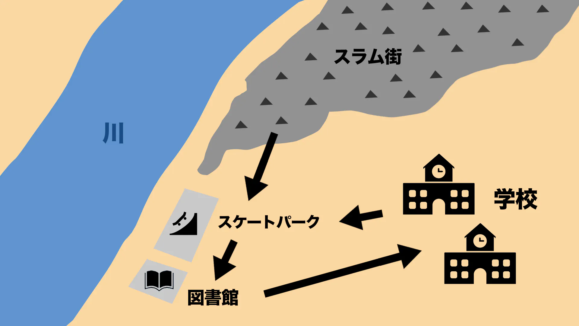パークを運営していく中で我々はこのスケートパークを中心に多くの人が集まり、コミニ ティが形成されていくことに気づきました。スケートパークがスラム街の子どもたちにとって大切な居場所となっていった。スケートパークへ日常的に遊びに来る子どもたちの中には様々な理由で学校へ行けていない子も存在し、図書館を作り身近に教育環境を整えることでスケートパークと学校の架け橋になることができるのではないかと考えました。