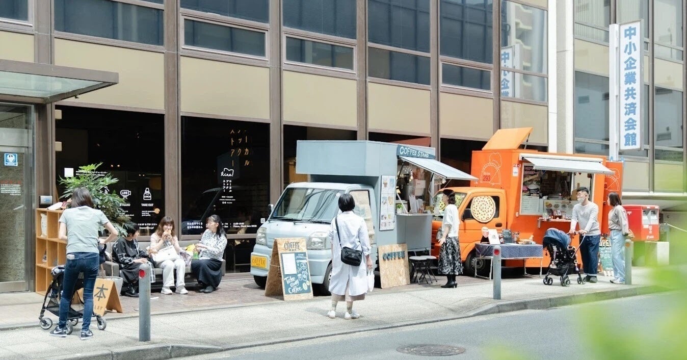 ▶︎馬車道のマスマス|LOCAL BOOK STORE kita.で開催してきた「パンとコーヒーと本のマルシェ」。ビルの前の空地を活かして、キッチンカーの方々にも出店いただき、賑やかな1日に。