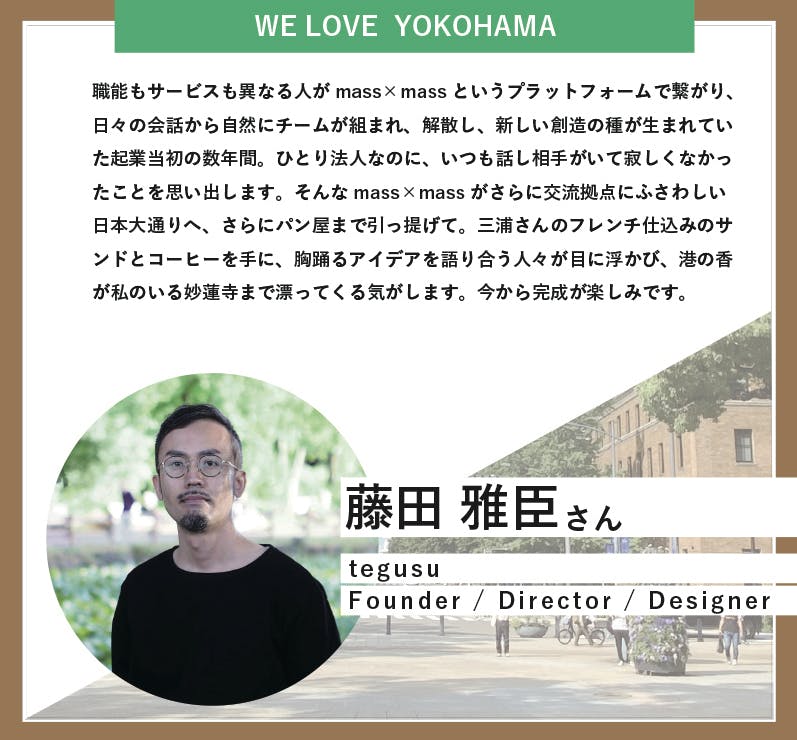 シェフ三浦の友人でもあり、横浜・mass×massコミュニティ繋がりで、いつも応援してくださる藤田さんから応援メッセージが届きました!